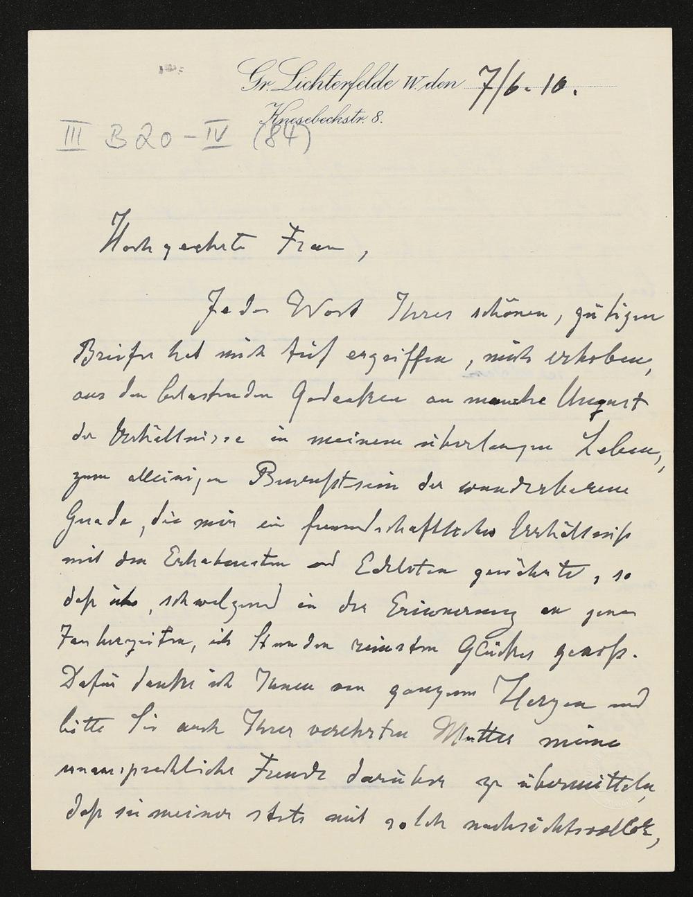 eigenhändiger Brief von Karl Klindworth an Cosima Wagner