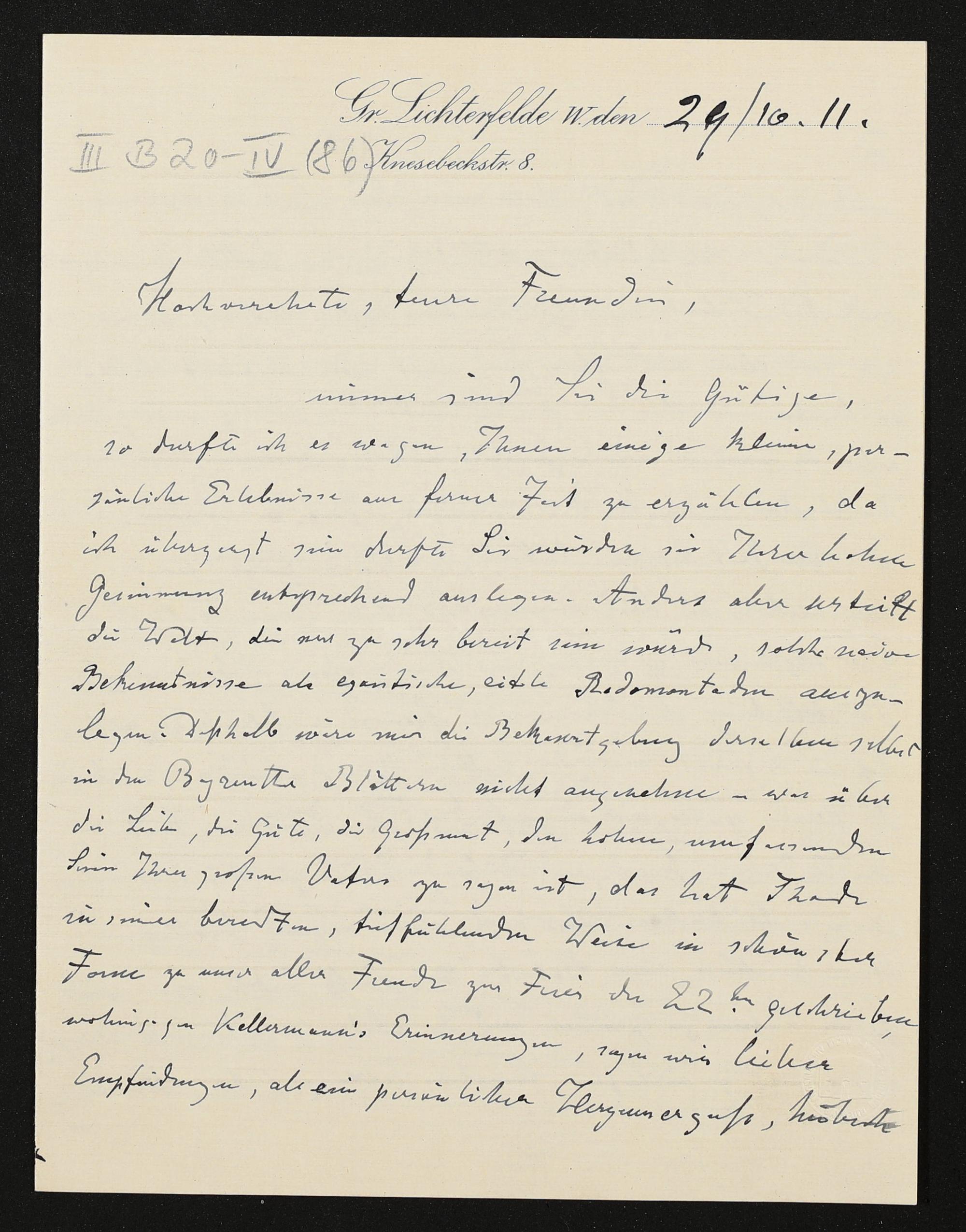 eigenhändiger Brief von Karl Klindworth an Cosima Wagner