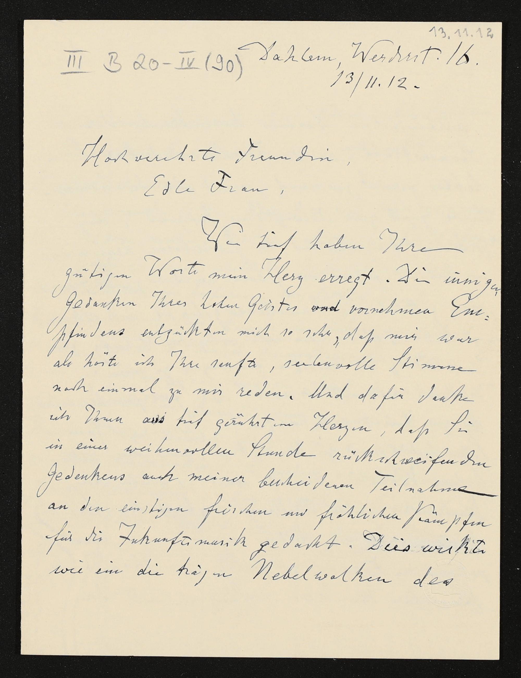 eigenhändiger Brief von Karl Klindworth an Cosima Wagner