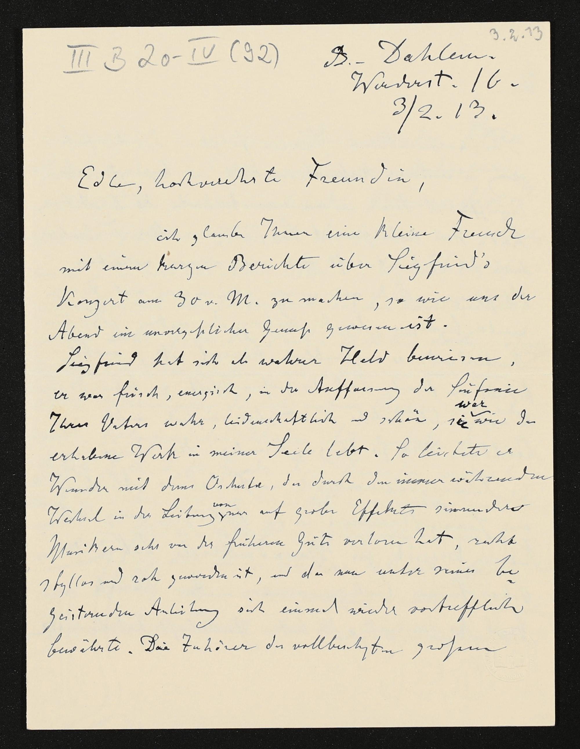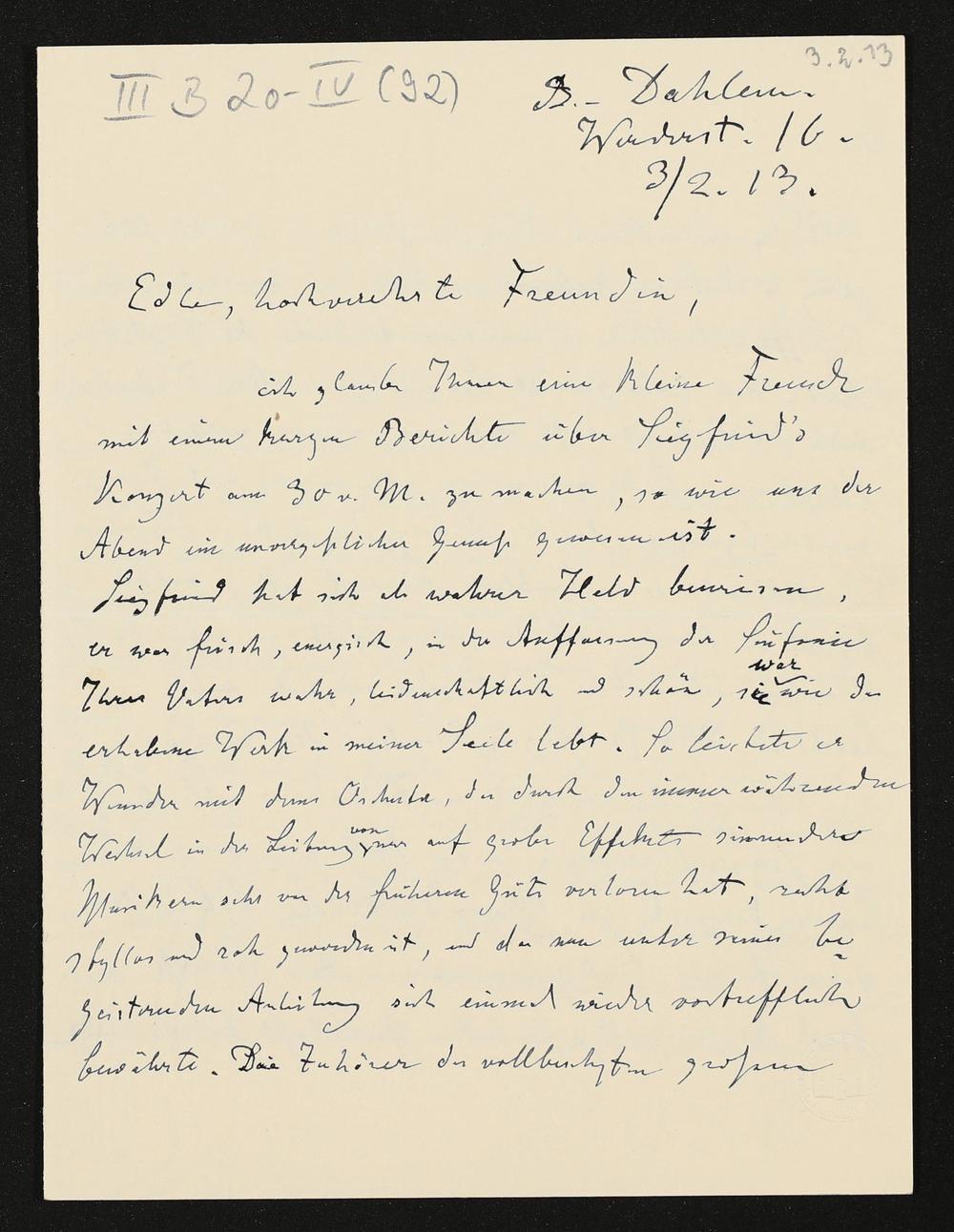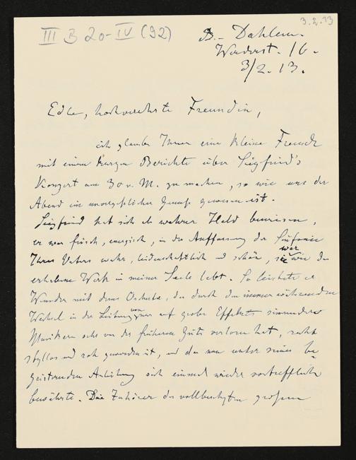 eigenhändiger Brief von Karl Klindworth an Cosima Wagner