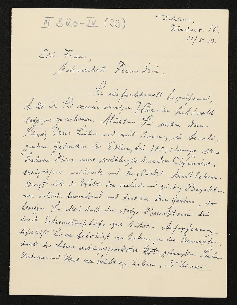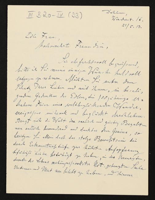 eigenhändiger Brief von Karl Klindworth an Cosima Wagner