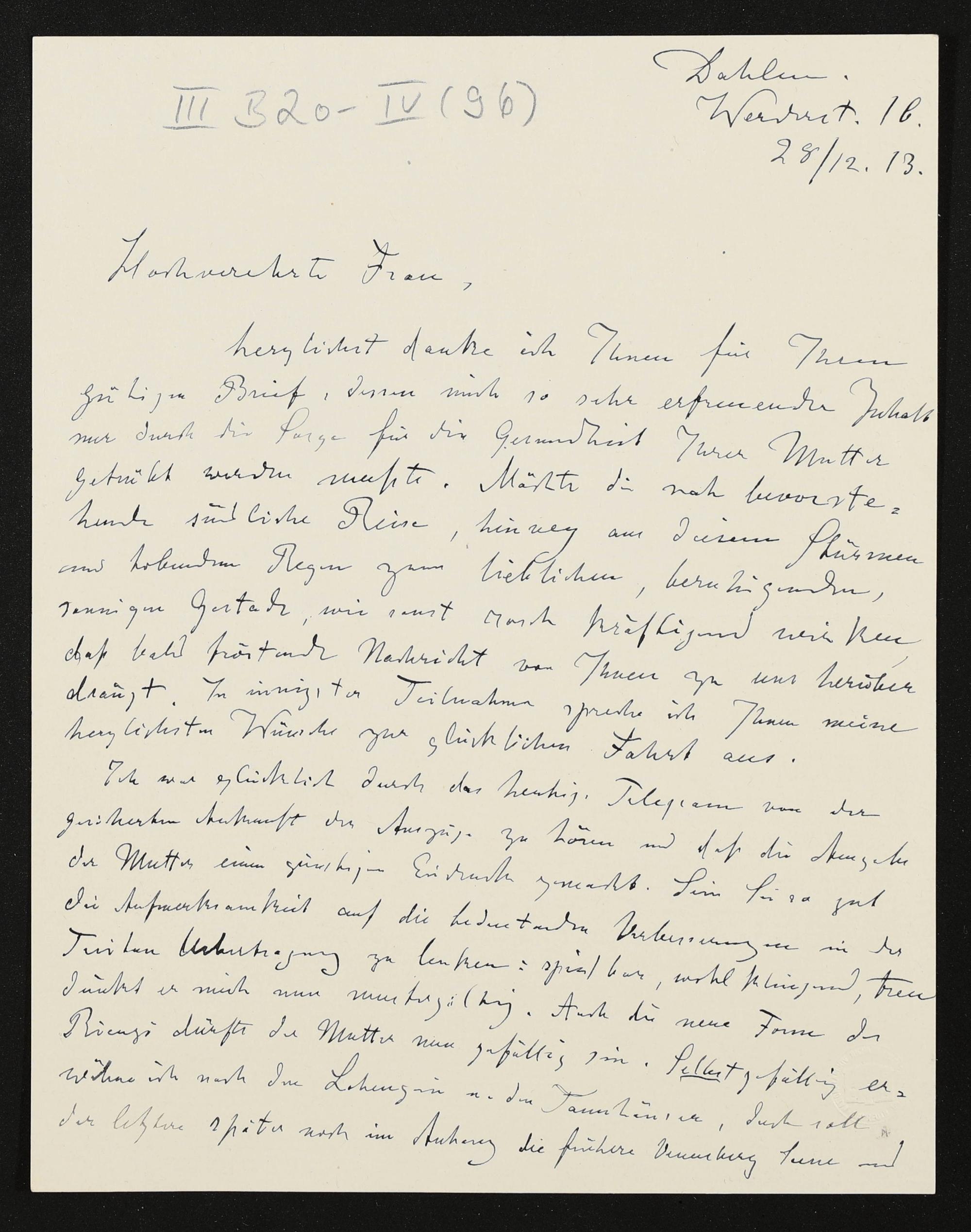 eigenhändiger Brief von Karl Klindworth an Cosima Wagner