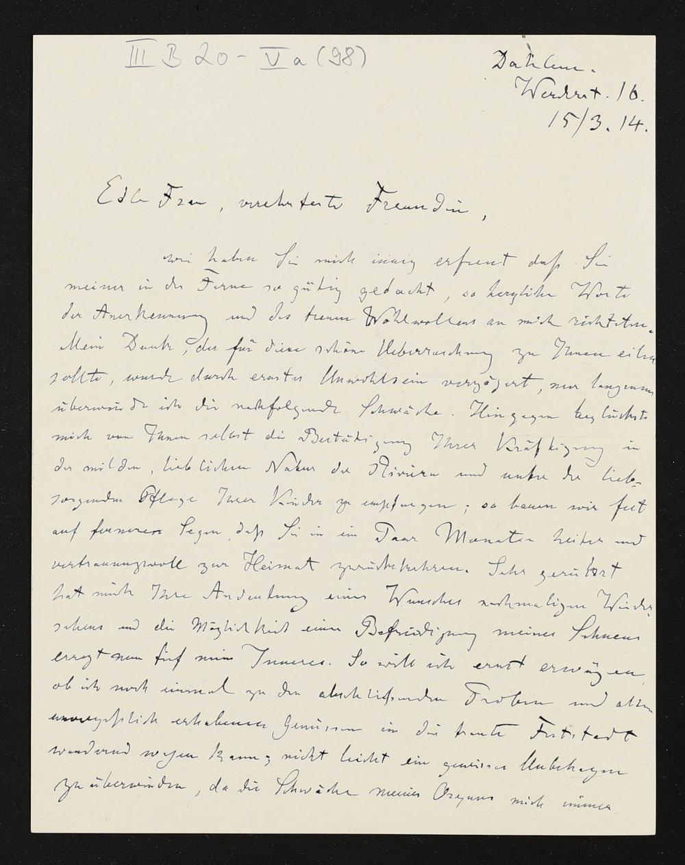 eigenhändiger Brief von Karl Klindworth an Cosima Wagner