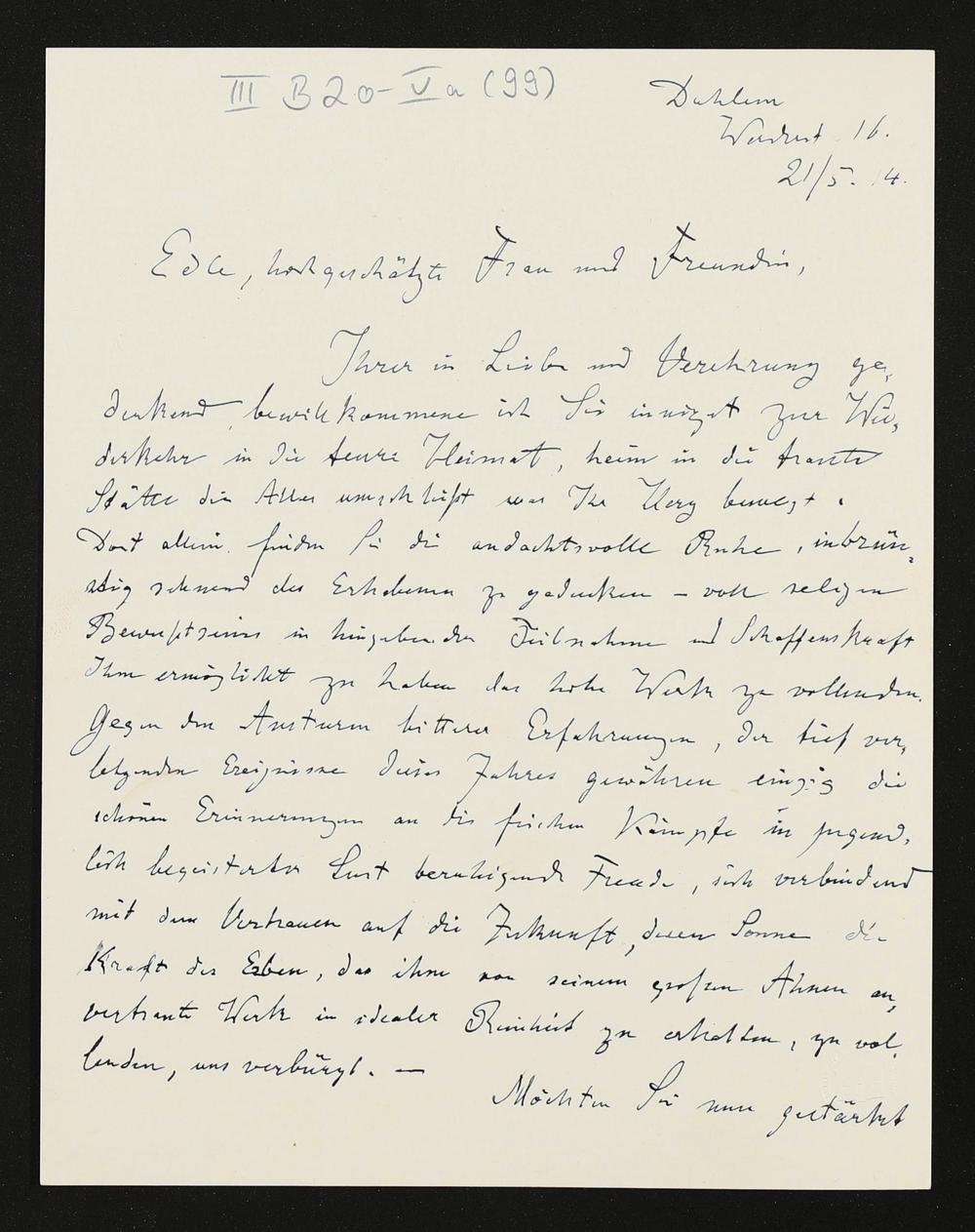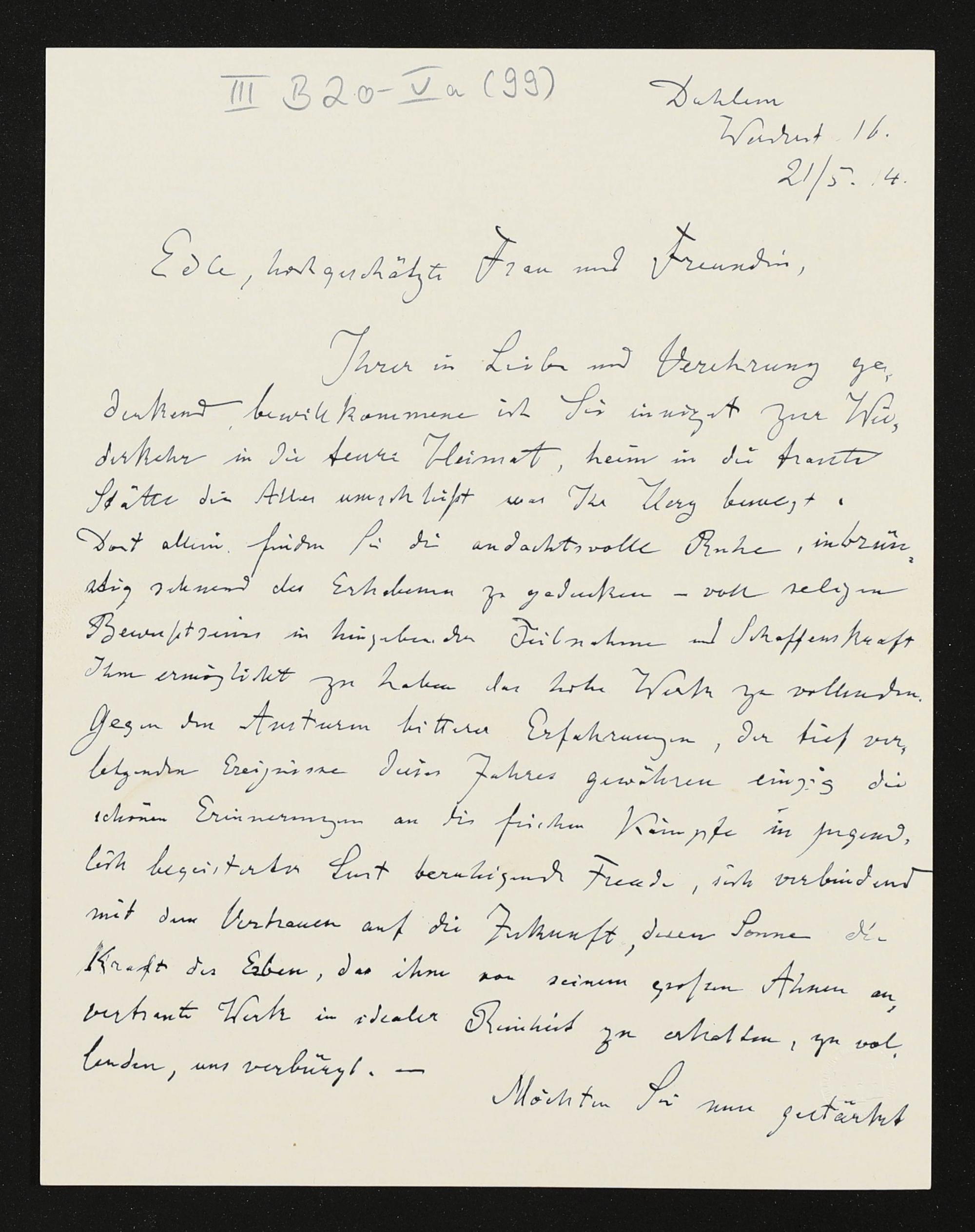eigenhändiger Brief von Karl Klindworth an Cosima Wagner