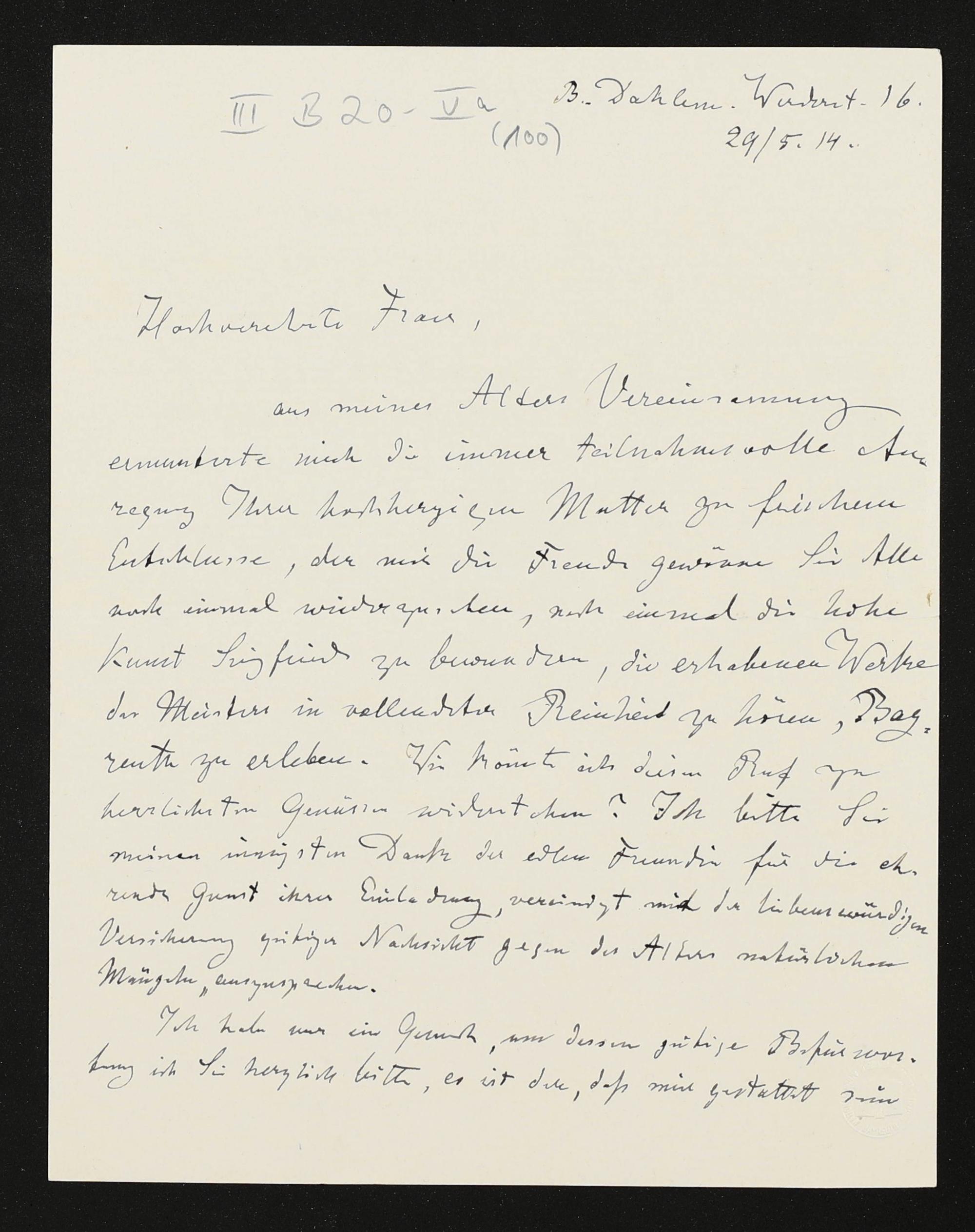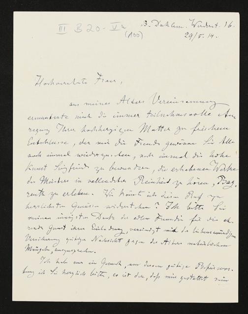 eigenhändiger Brief von Karl Klindworth an Cosima Wagner