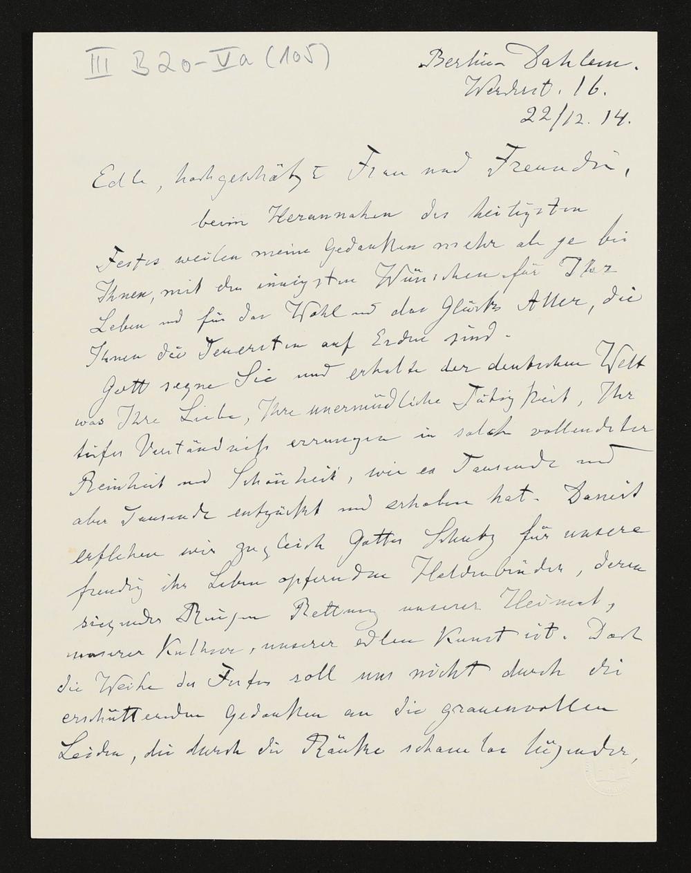 eigenhändiger Brief von Karl Klindworth an Cosima Wagner