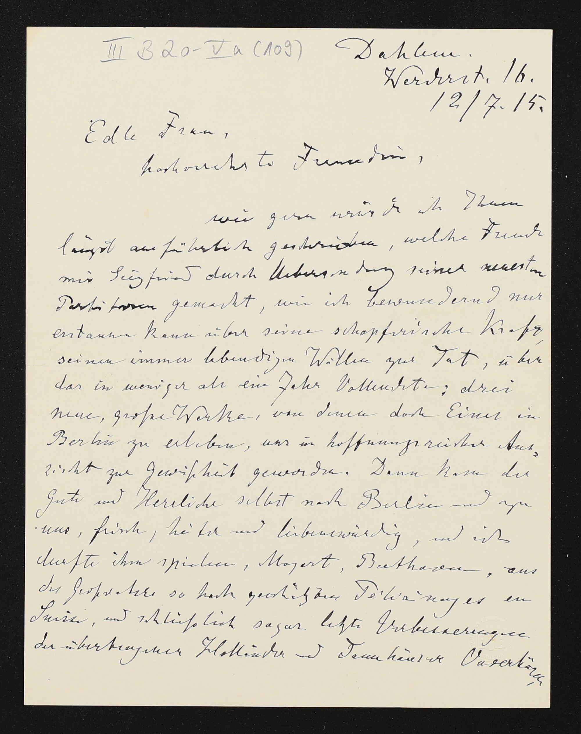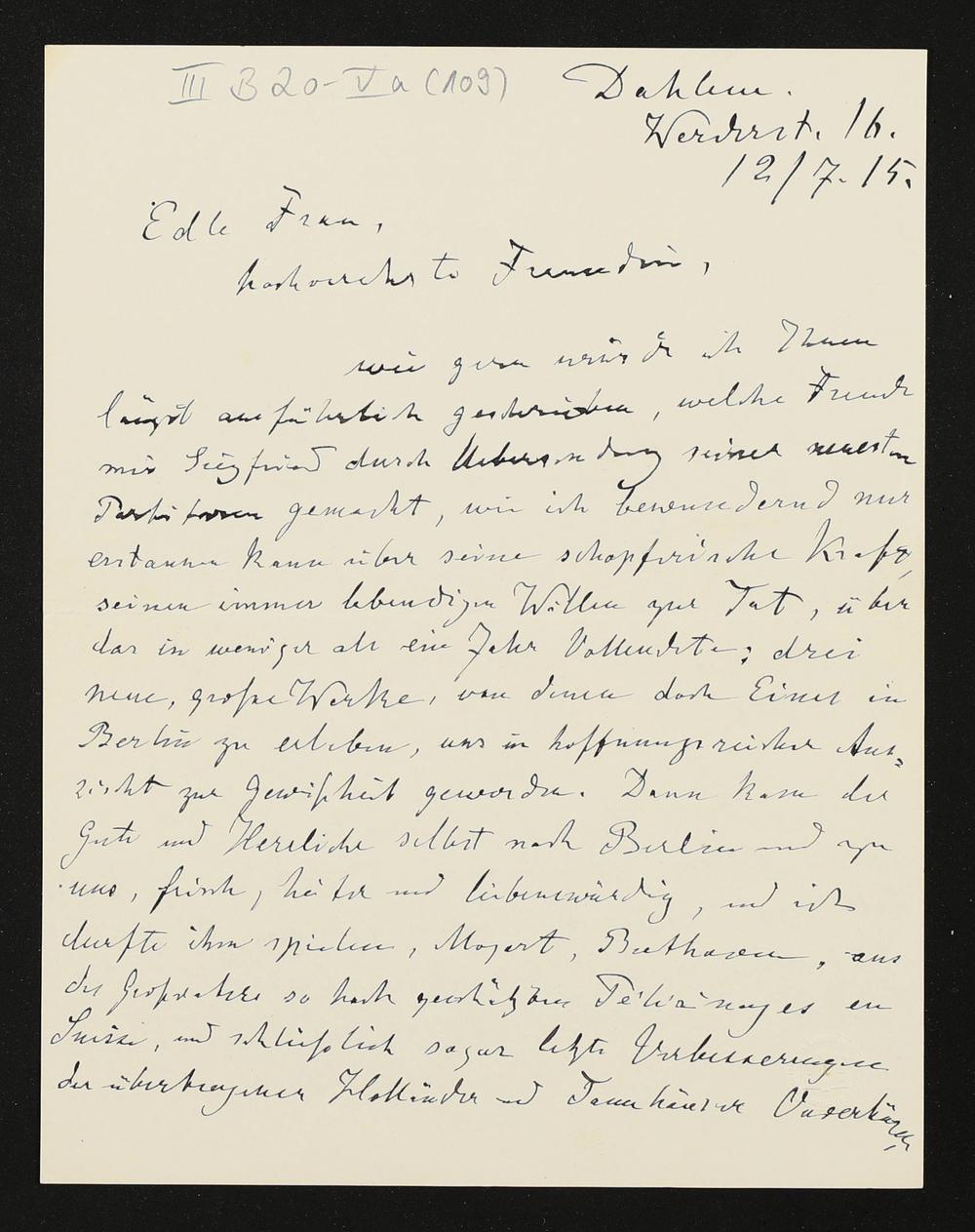 eigenhändiger Brief von Karl Klindworth an Cosima Wagner