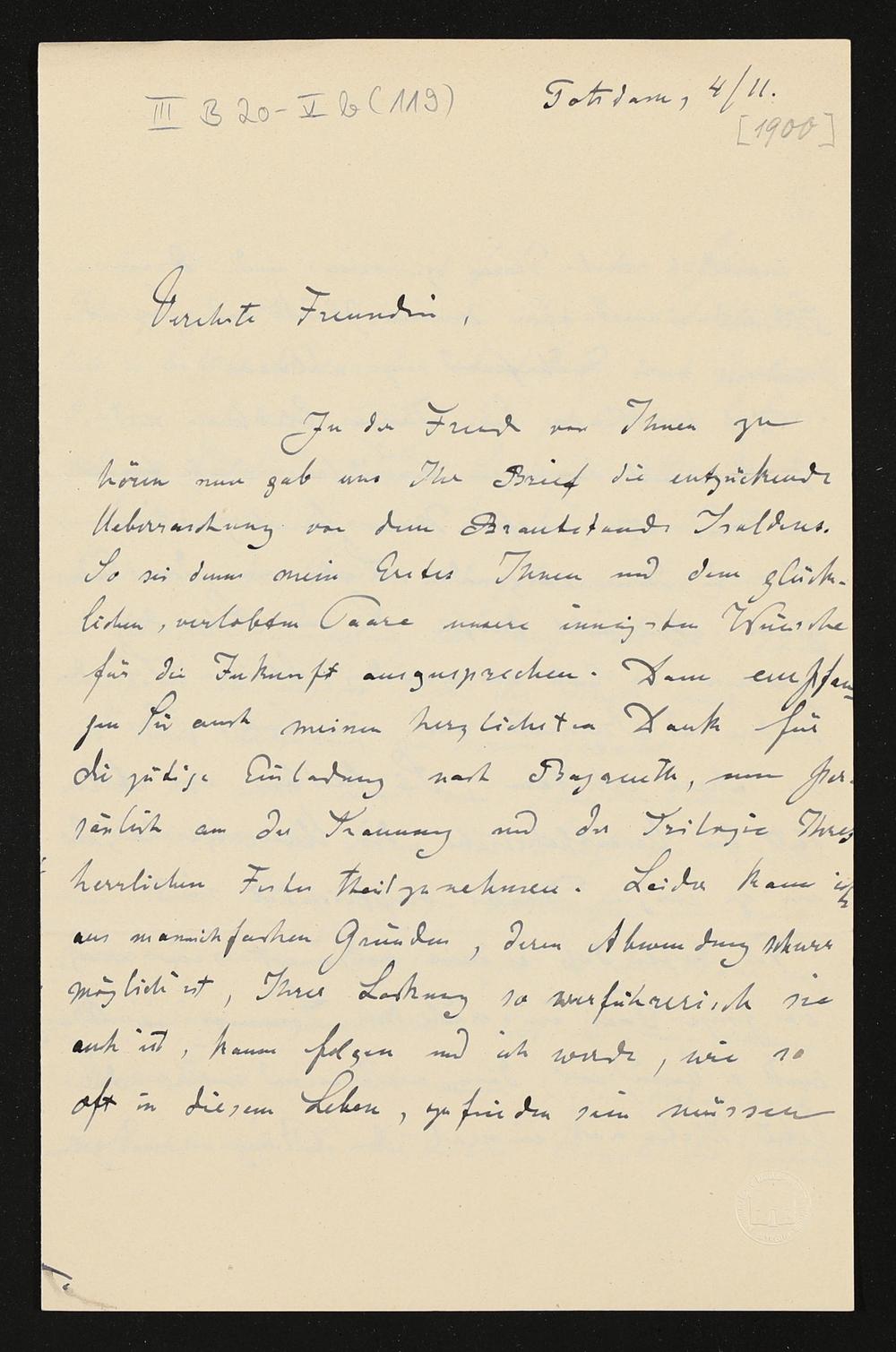 eigenhändiger Brief von Karl Klindworth an Cosima Wagner