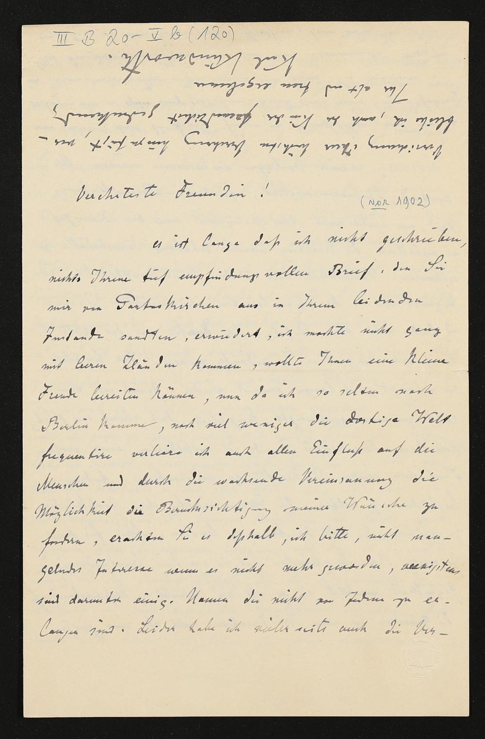 eigenhändiger Brief von Karl Klindworth an Cosima Wagner