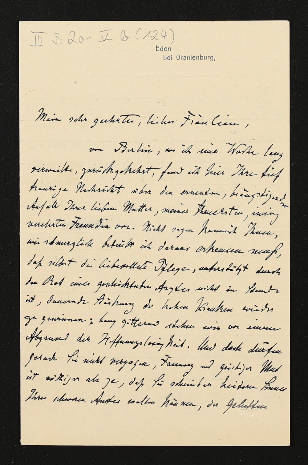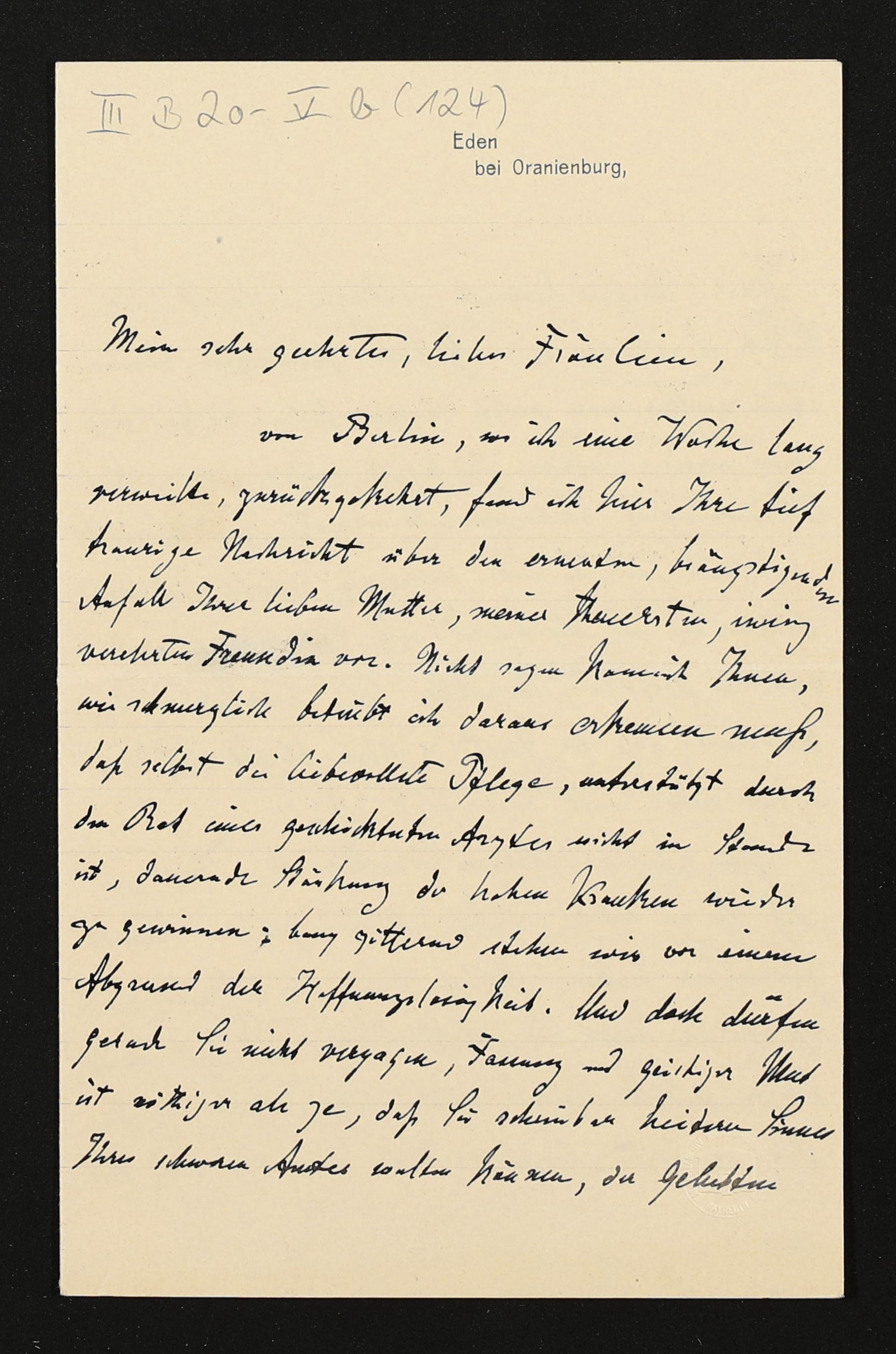 eigenhändiger Brief von Karl Klindworth an Eva Wagner
