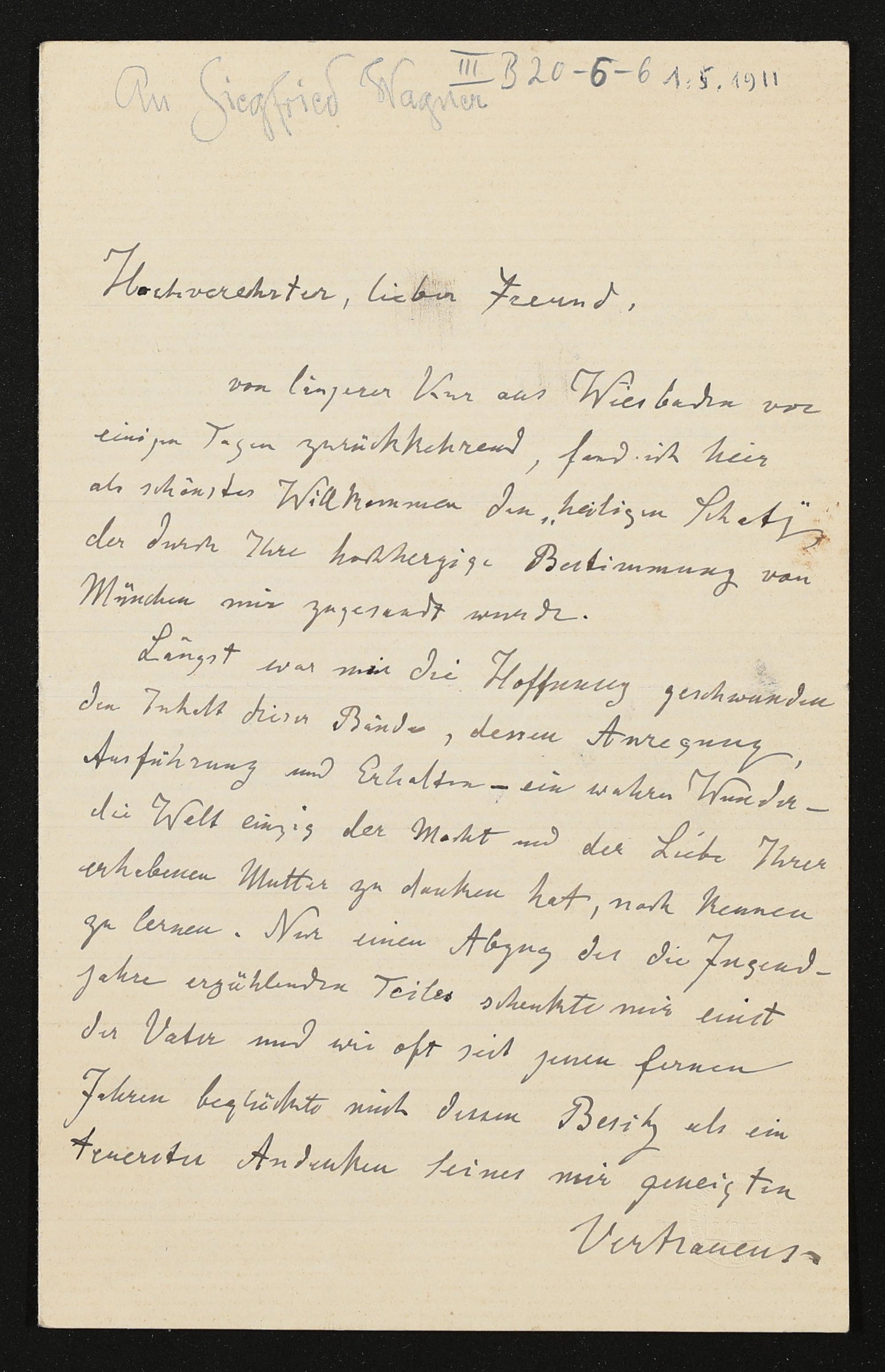 eigenhändiger Brief von Karl Klindworth an Siegfried Wagner