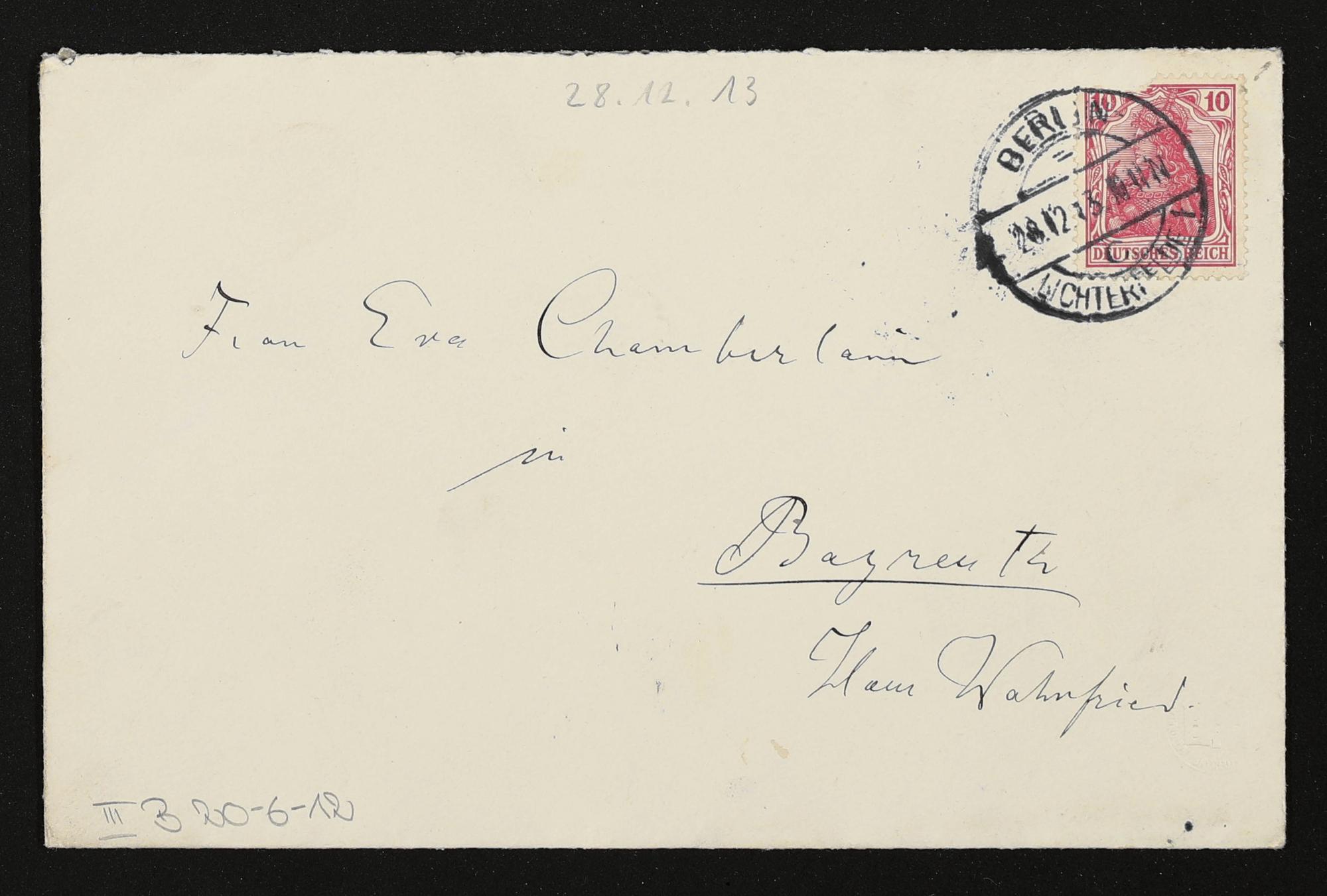 eigenhändig beschrifteter Briefumschlag von Karl Klindworth an Eva Chamberlain