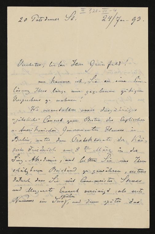 eigenhändiger Brief von Karl Klindworth (Klindworth'sche Musikschule) an Heinrich Grünfeld