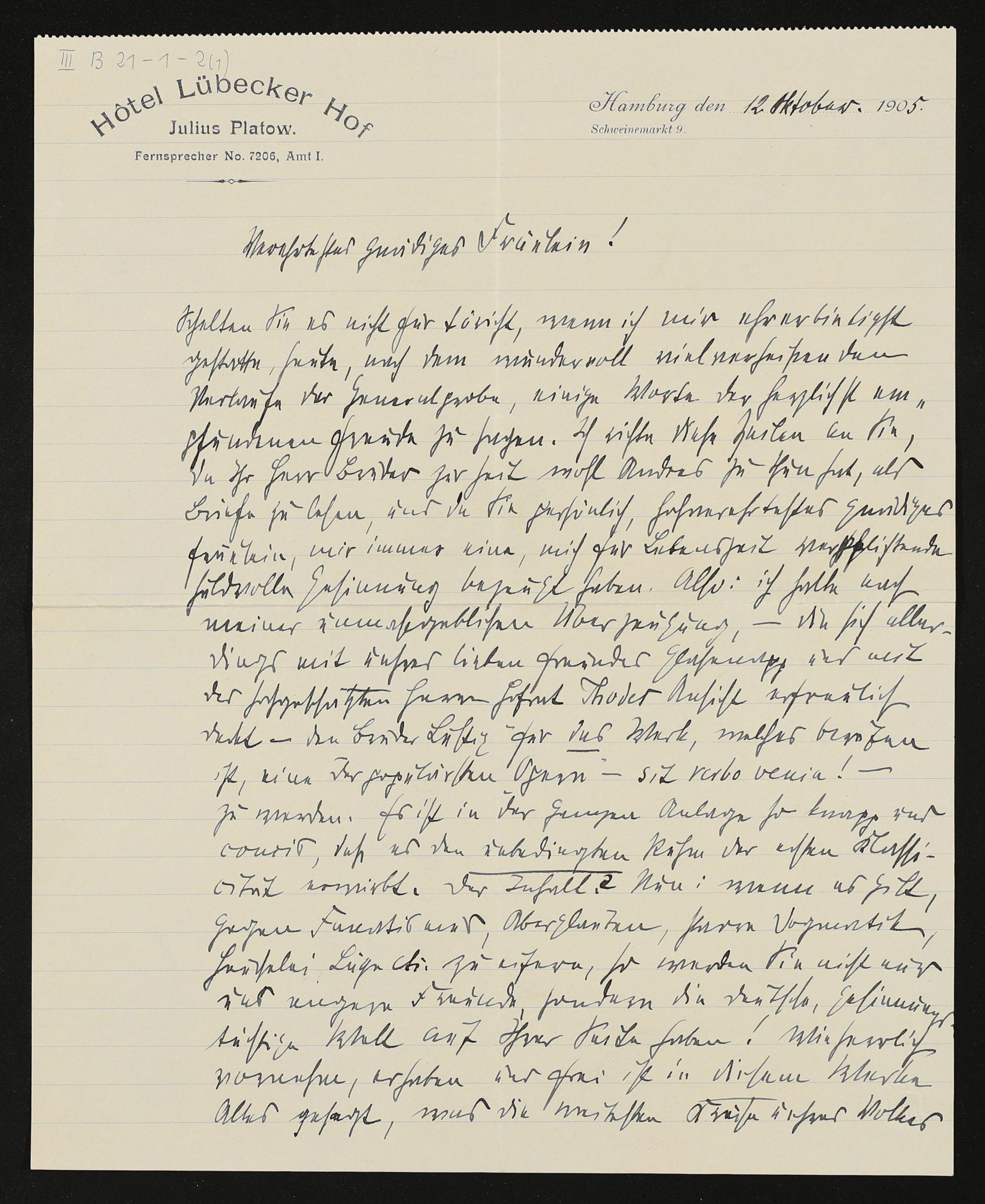 eigenhändiger Brief von Erich Kloss an Eva Wagner