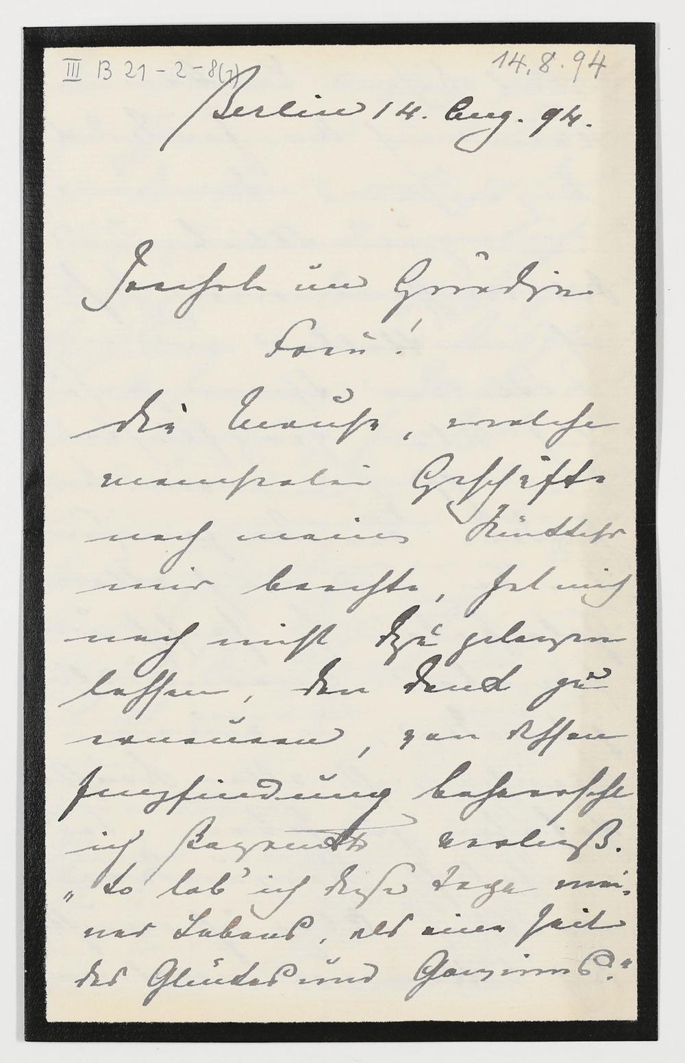 eigenhändiger Brief von Botho von dem Knesebeck an Cosima Wagner