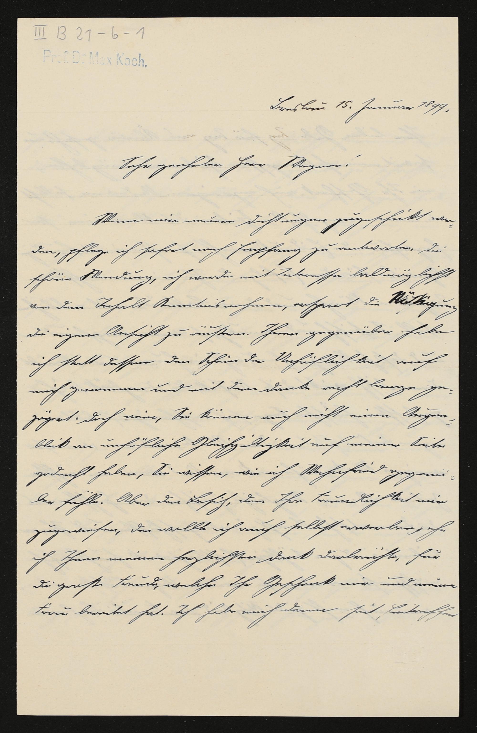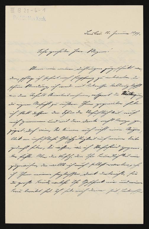 eigenhändiger Brief von Max Koch an Cosima Wagner