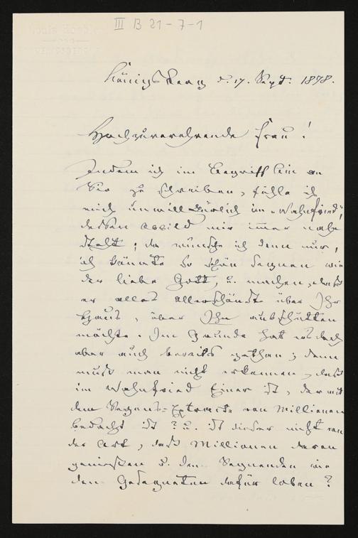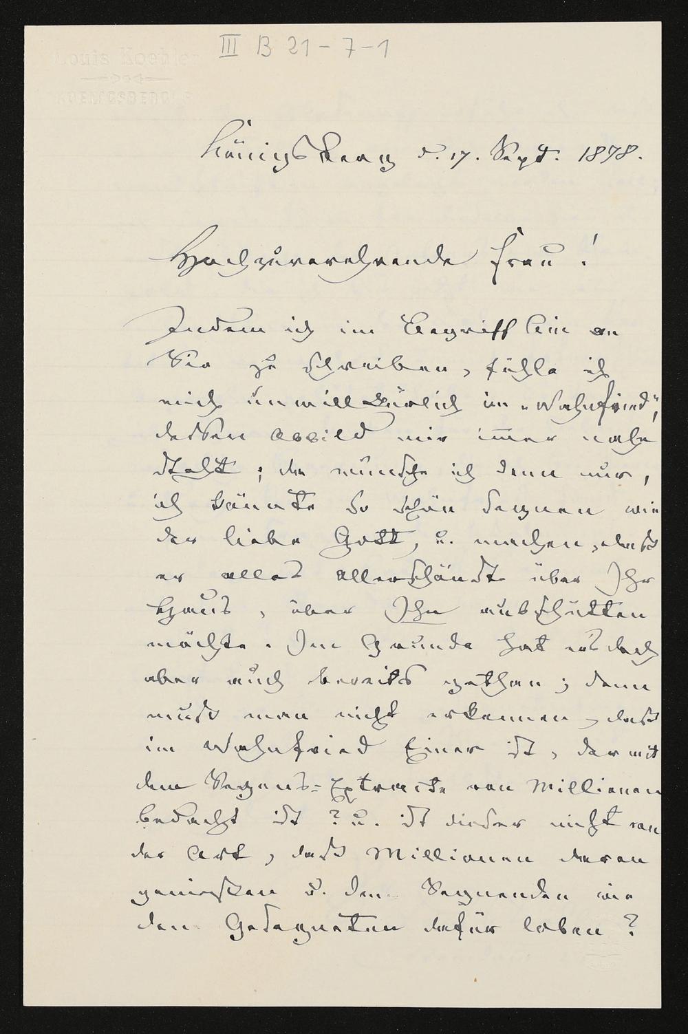 eigenhändiger Brief von Louis Köhler an Cosima Wagner