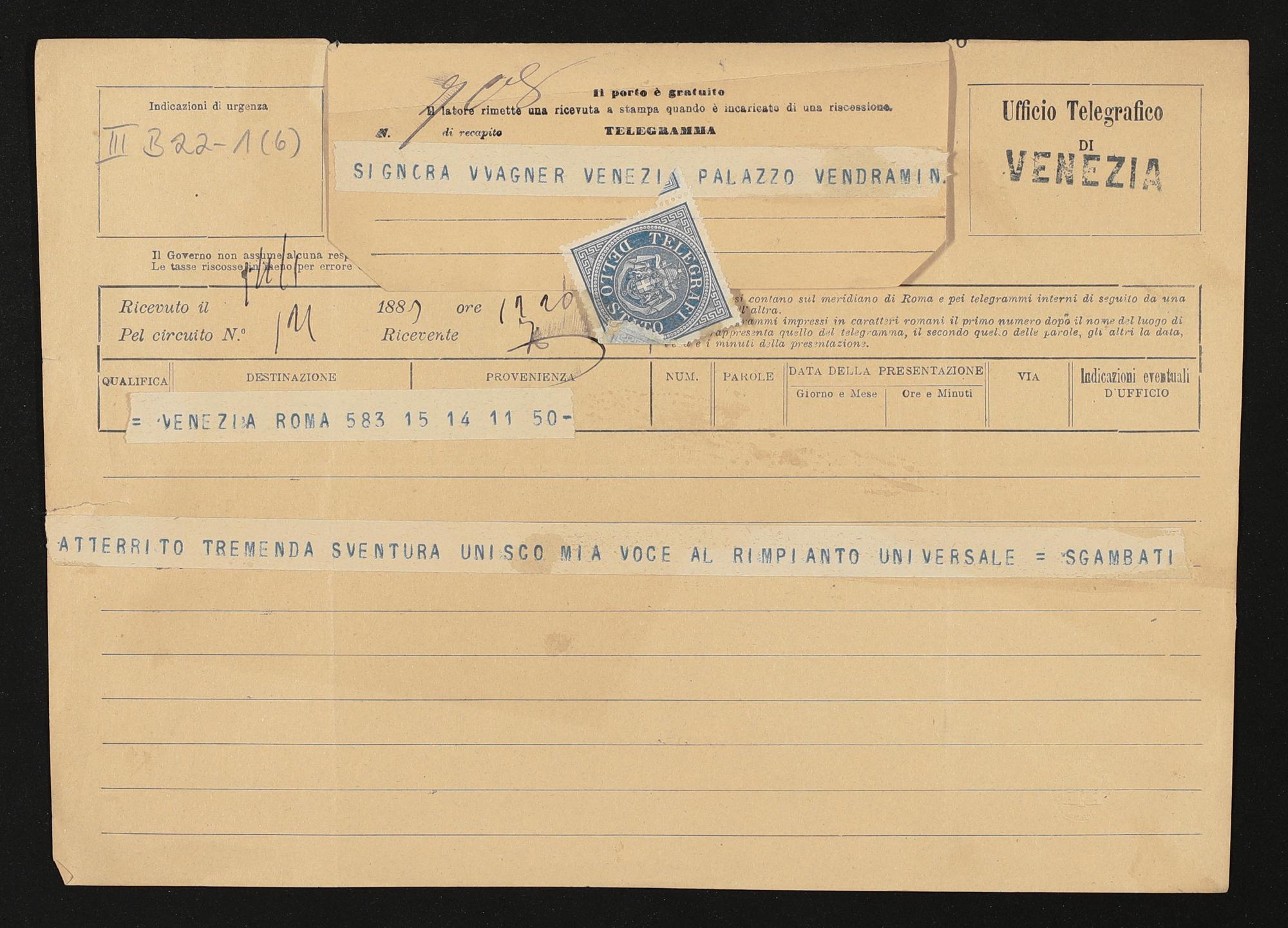 Telegramm von Giovanni Sgambati an Cosima Wagner