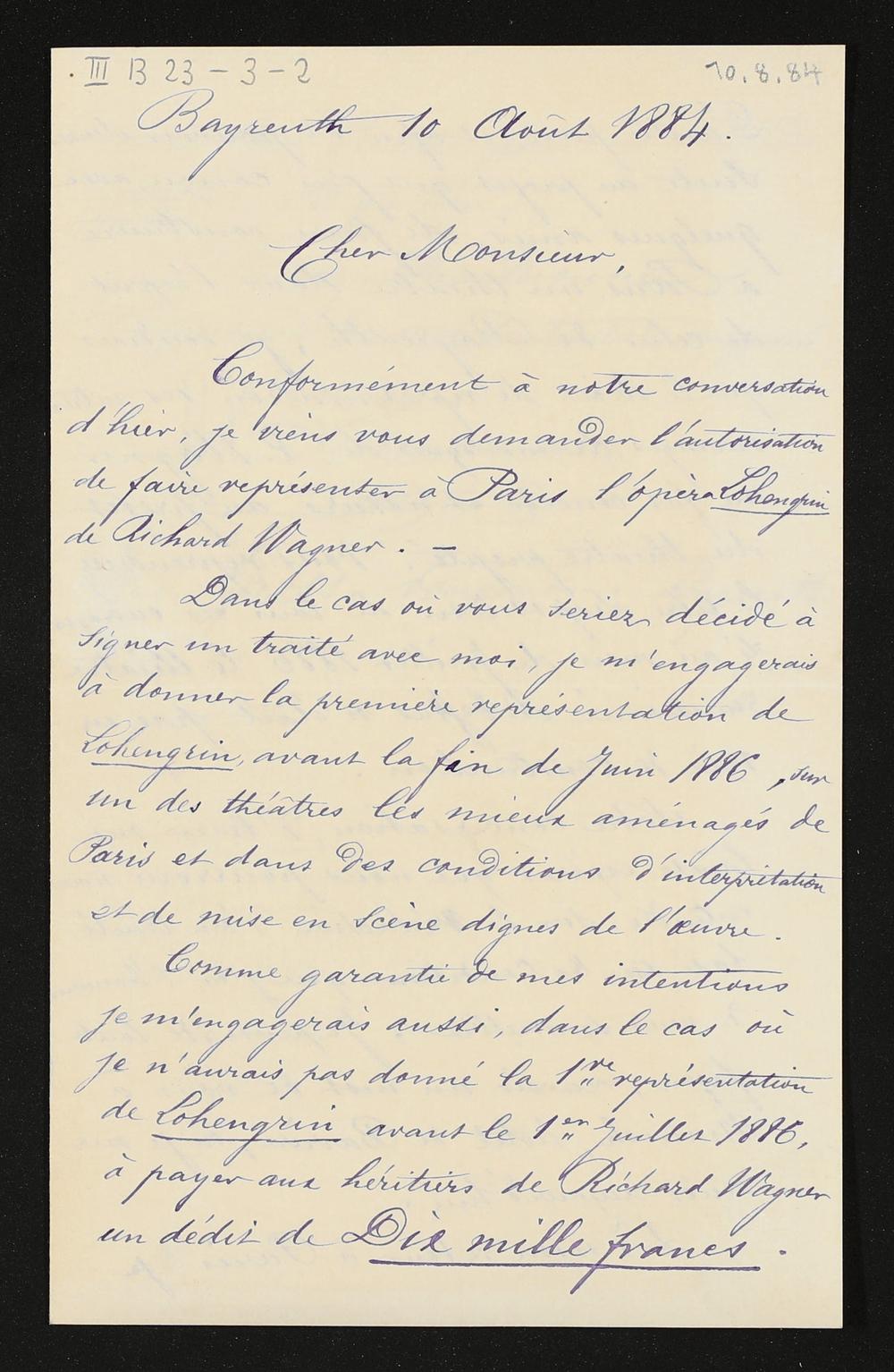 eigenhändiger Brief von Charles Lamoureux an Adolf von Gross