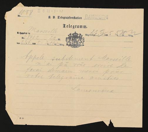 Telegramm von Charles Lamoureux an Adolf von Gross