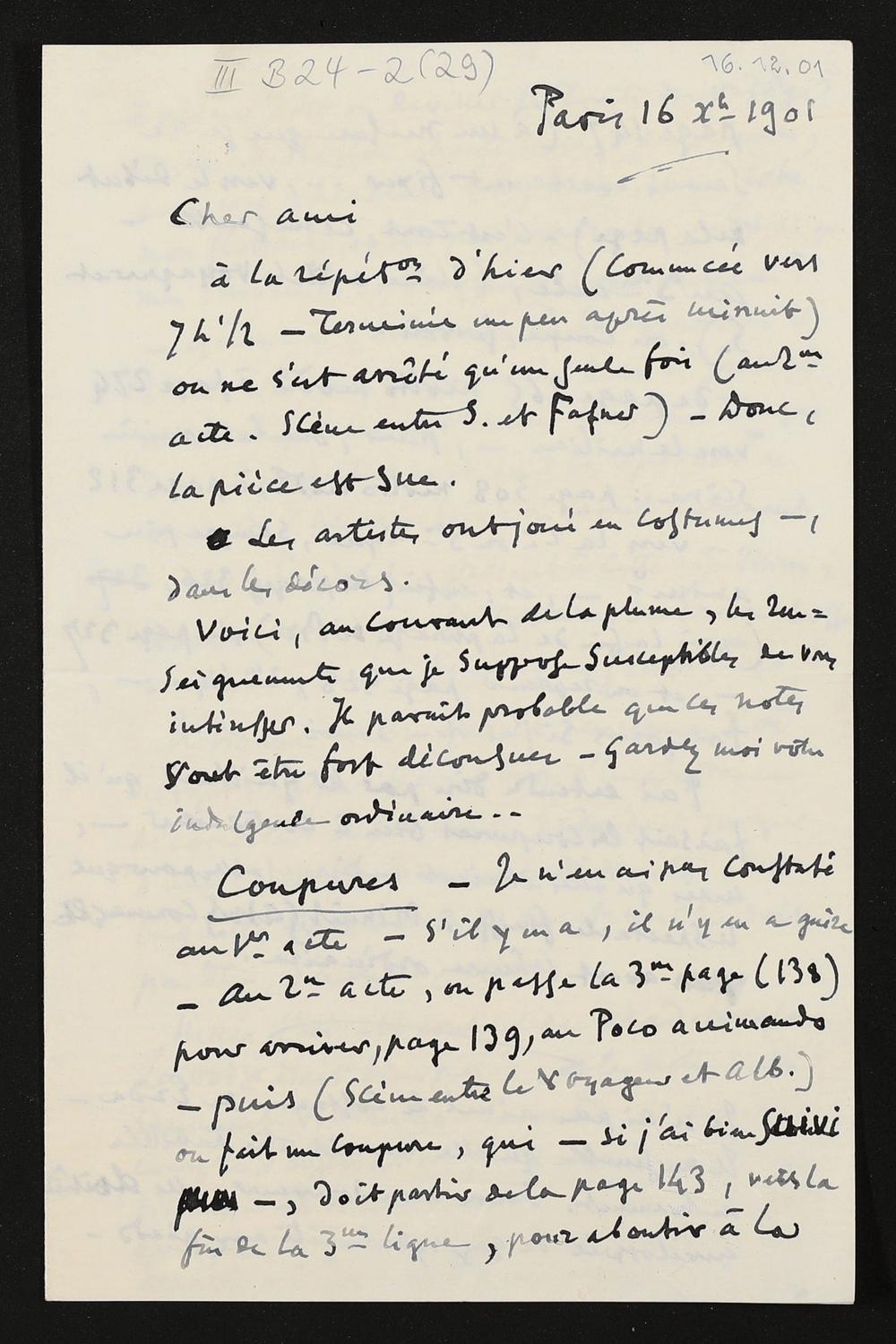 eigenhändiger Brief von Antoine Lascoux mutmaßlich an Adolf von Gross