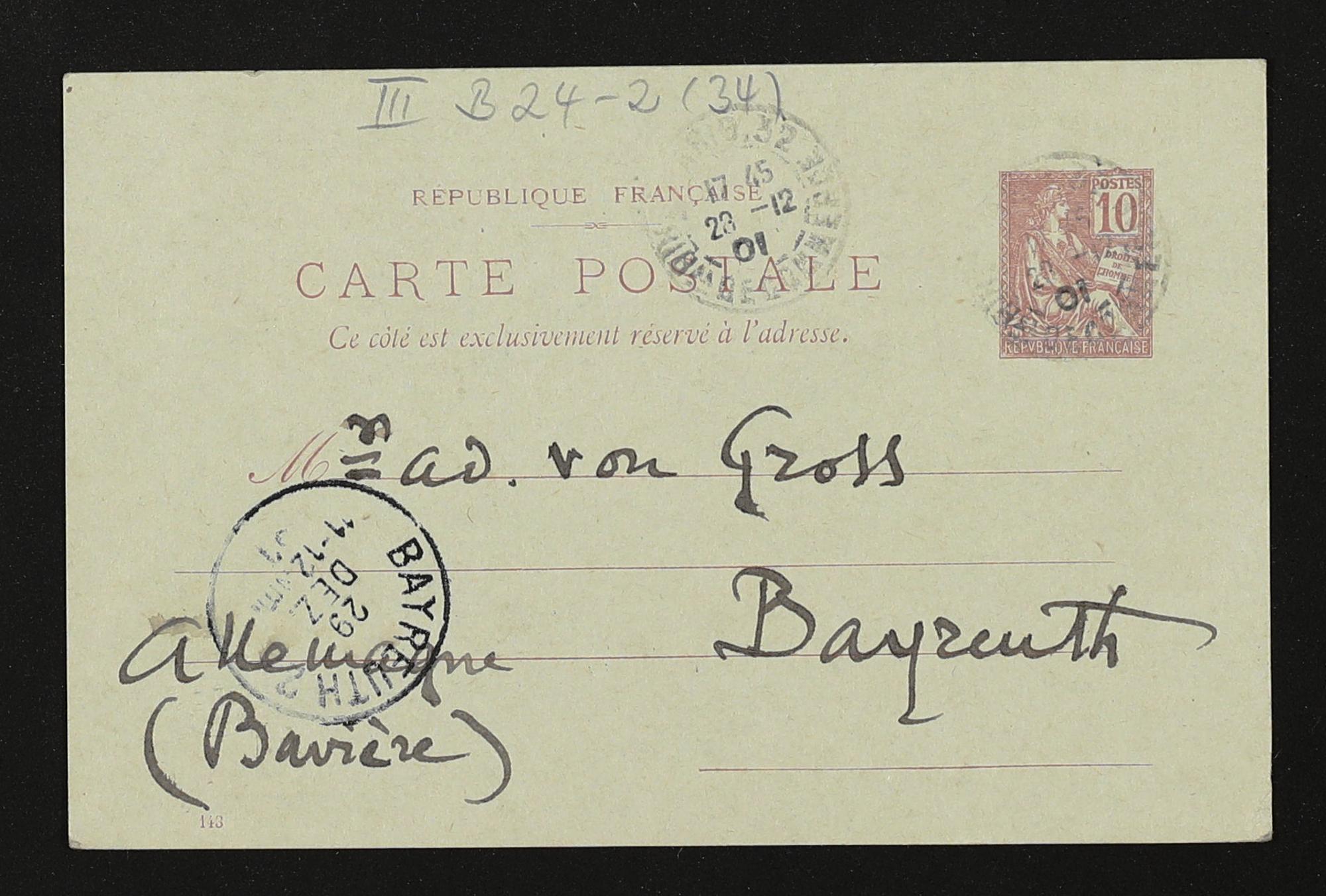 eigenhändige Postkarte von Antoine Lascoux an Adolf von Gross