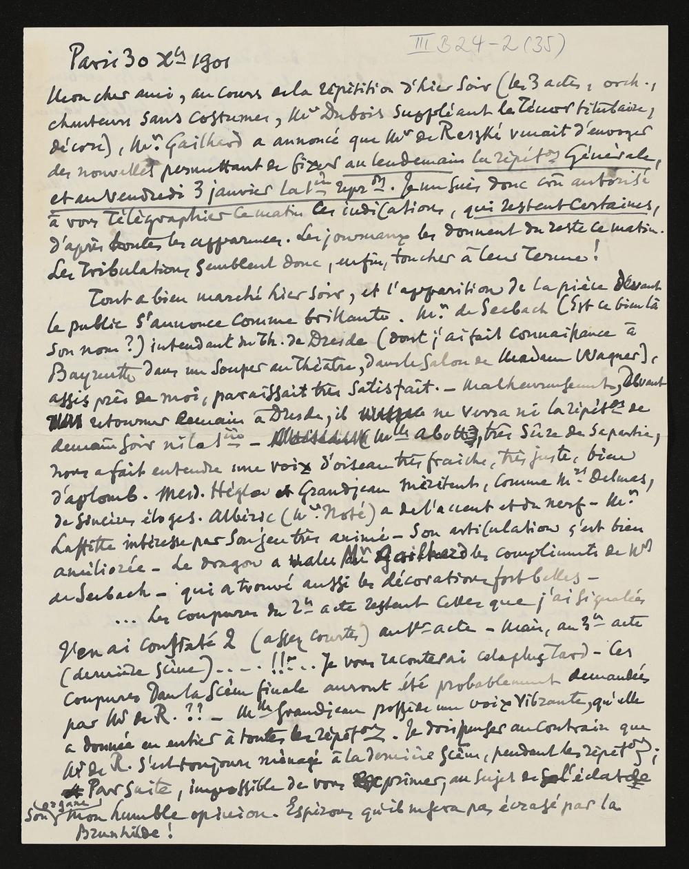 eigenhändiger Brief von Antoine Lascoux mutmaßlich an Adolf von Gross