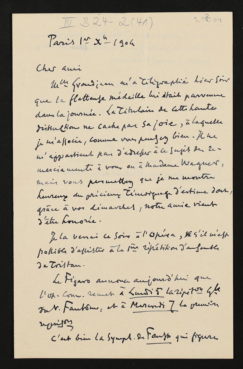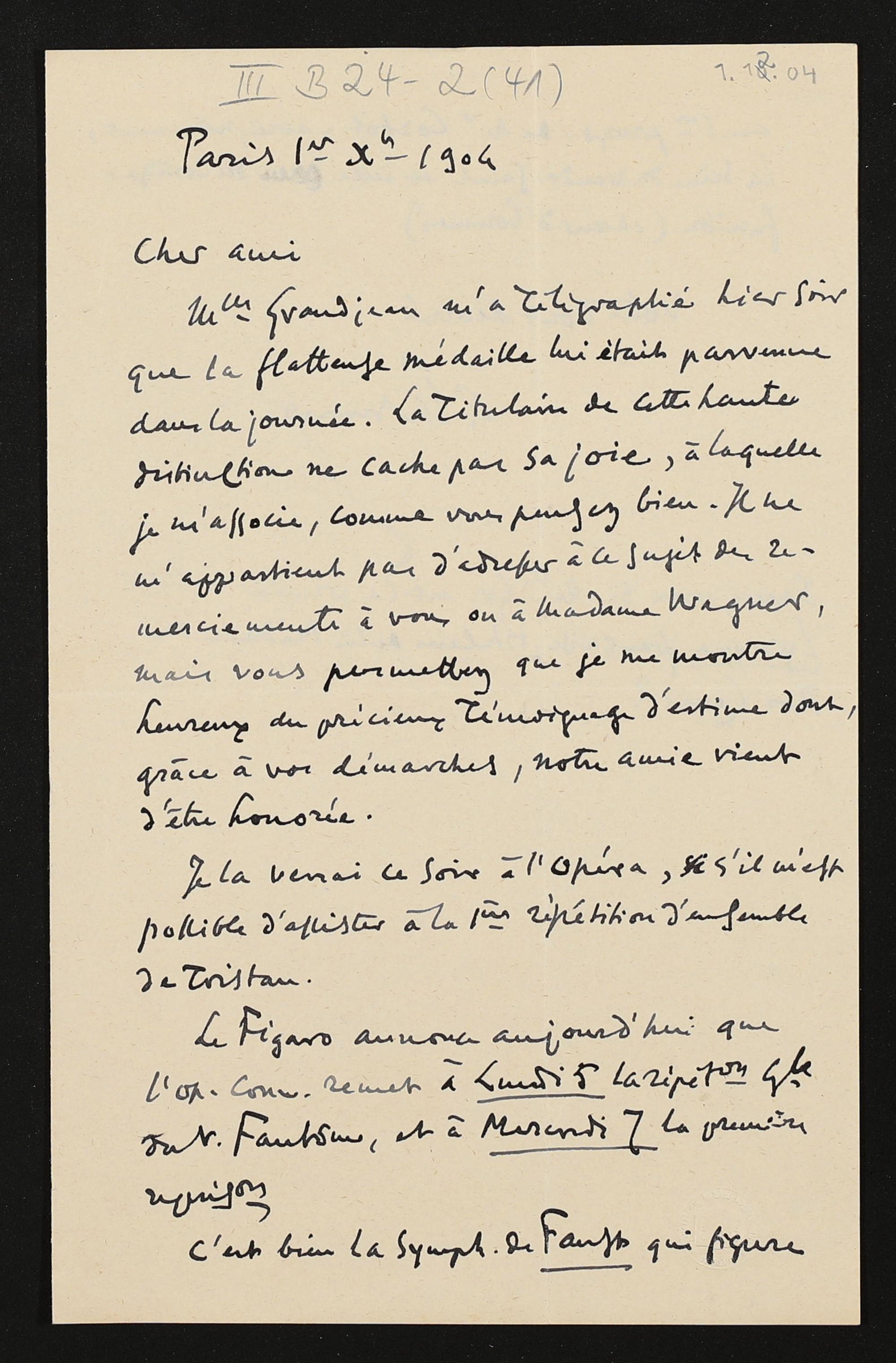 eigenhändiger Brief von Antoine Lascoux mutmaßlich an Adolf von Gross