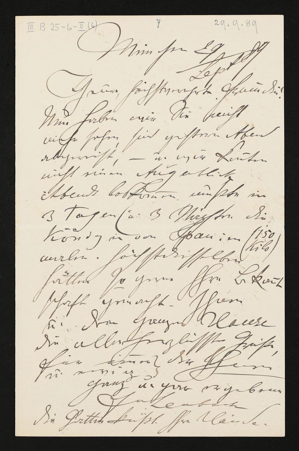 eigenhändiger Brief von Franz von Lenbach an Cosima Wagner
