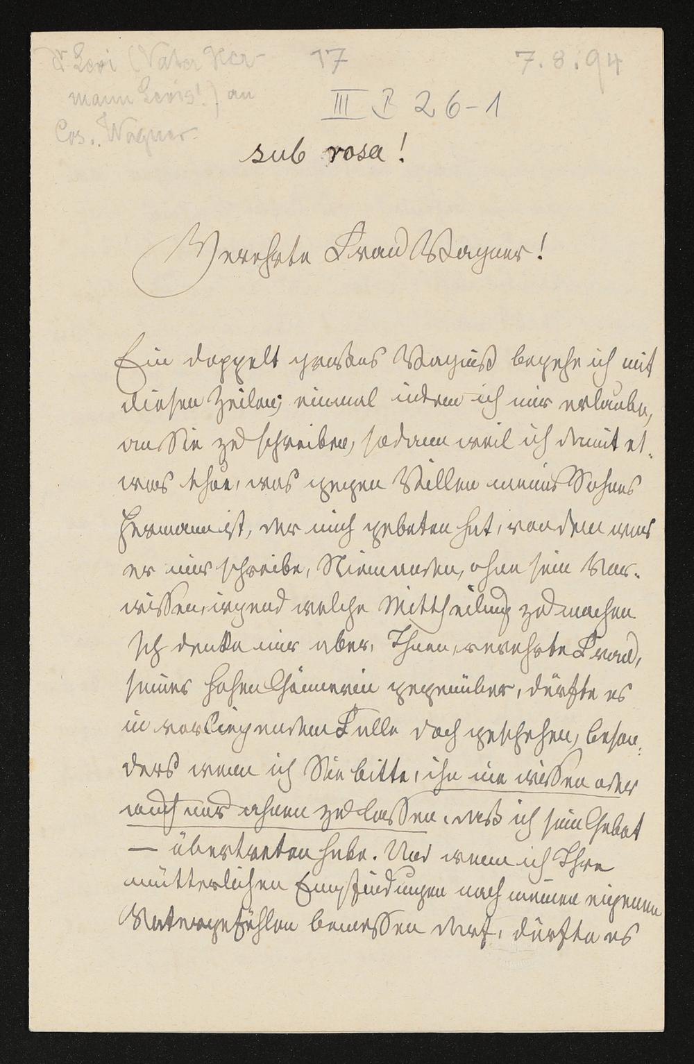 eigenhändiger Brief von Benedikt Levi an Cosima Wagner