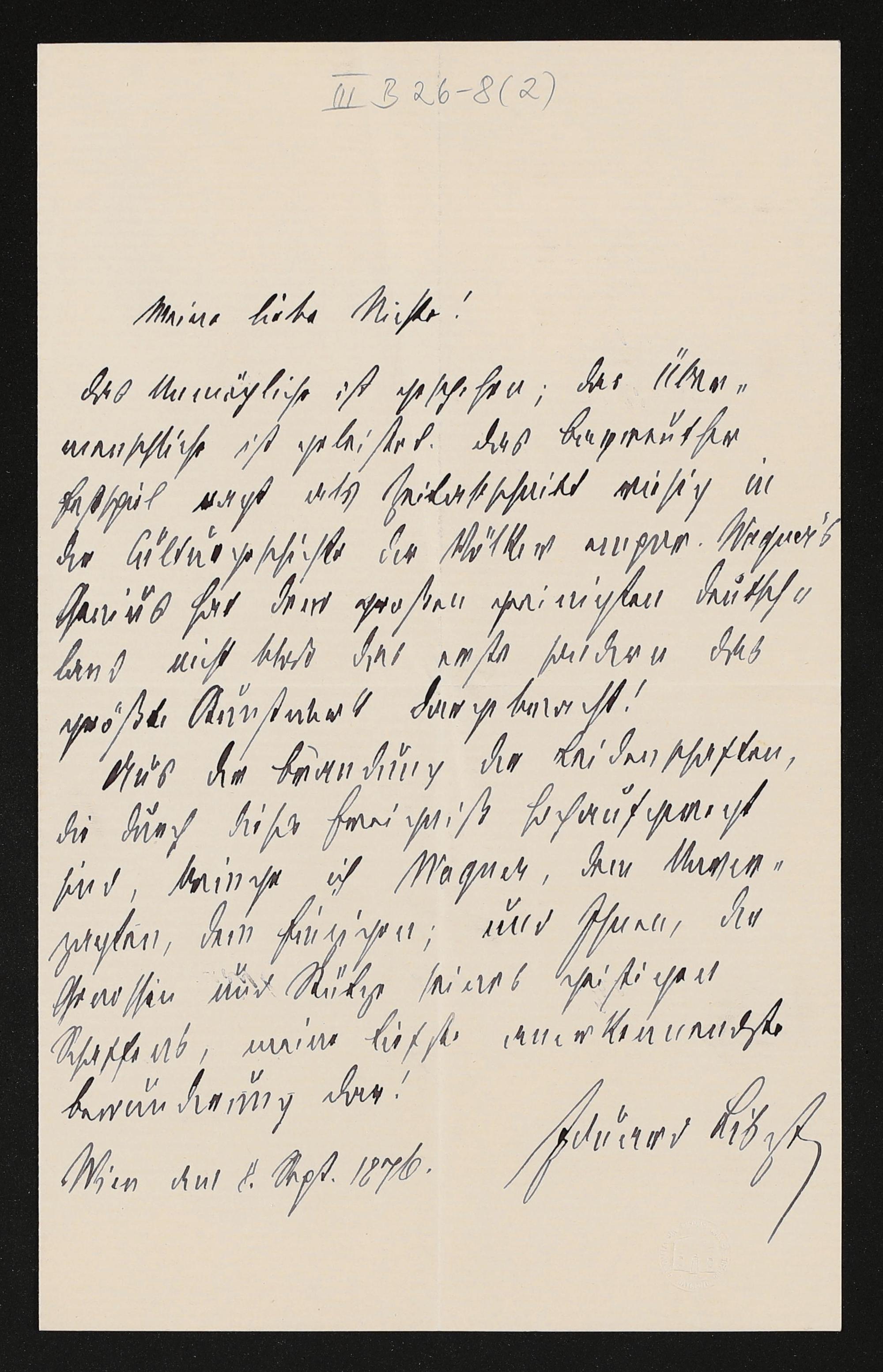 eigenhändiger Brief von Eduard Liszt an Richard Wagner