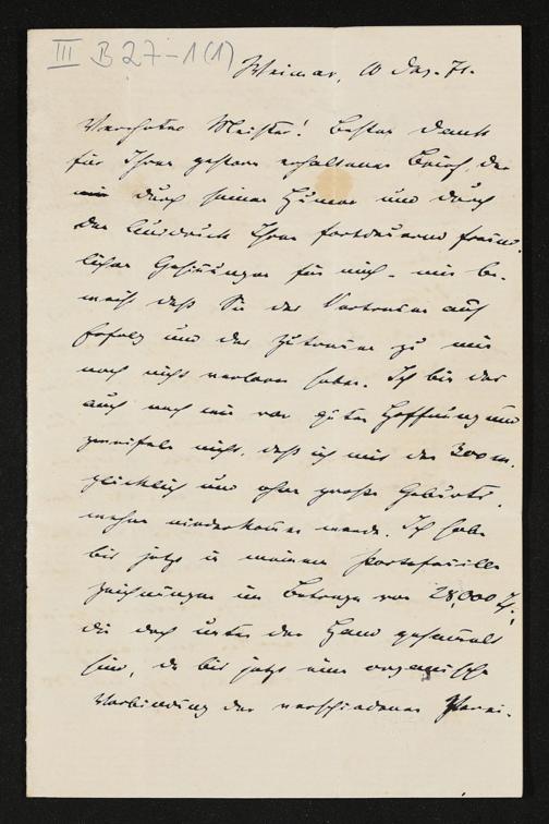 eigenhändiger Brief von Freiherr August von Loën an Richard Wagner