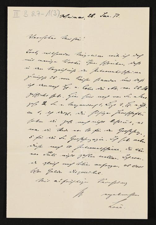 eigenhändiger Brief von Freiherr August von Loën an Richard Wagner