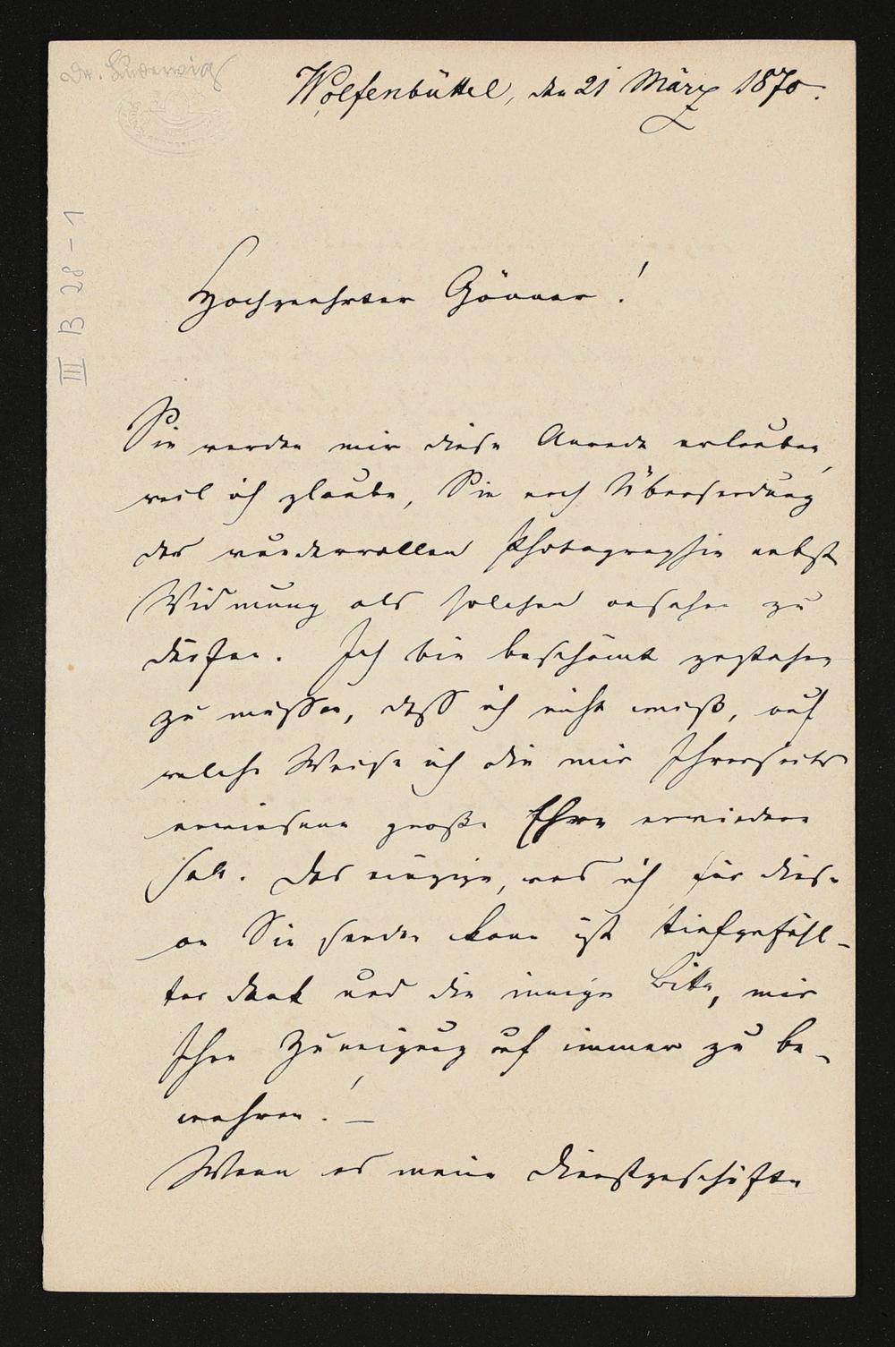 eigenhändiger Brief von Unbekannt Ludewig an Richard Wagner