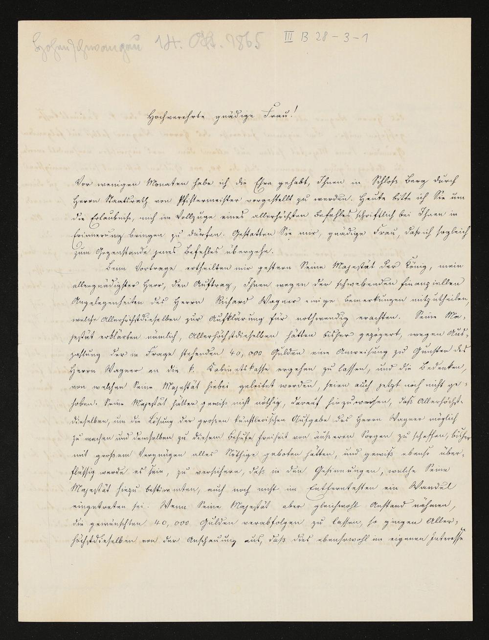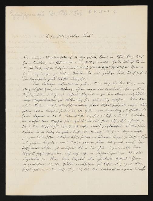 eigenhändiger Brief von Johann Freiherr von Lutz an Cosima Wagner