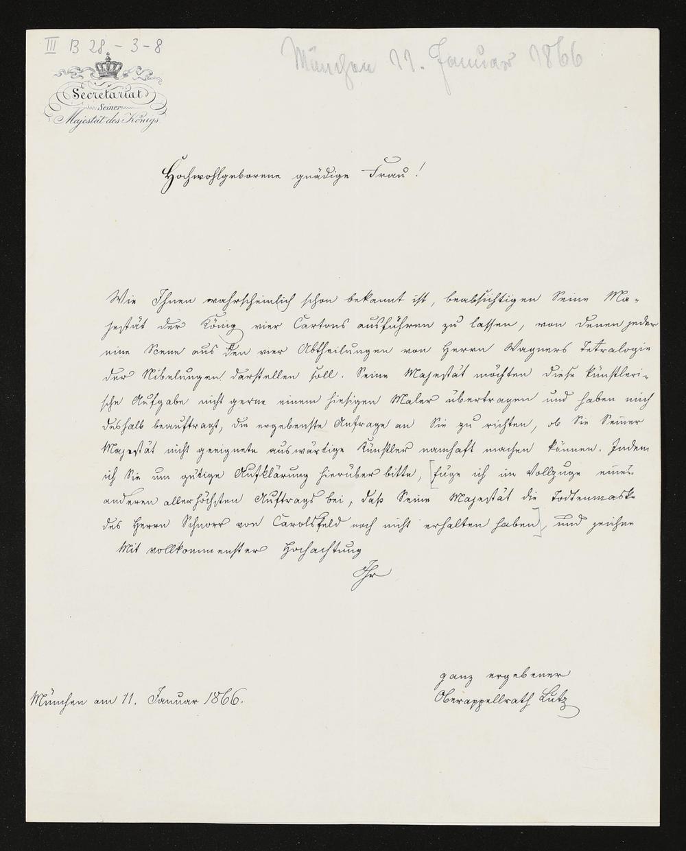 eigenhändiger Brief von Johann Freiherr von Lutz an Cosima Wagner