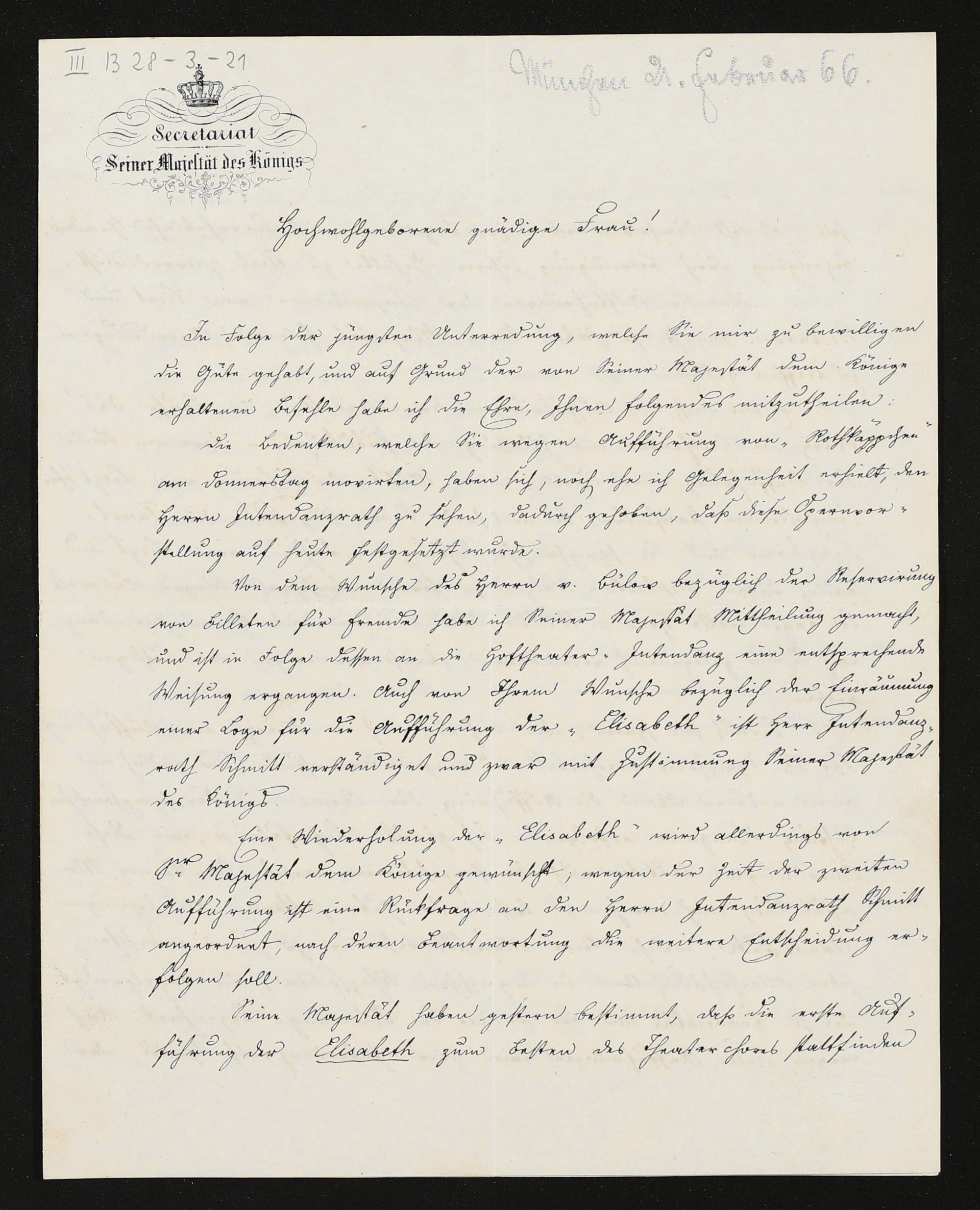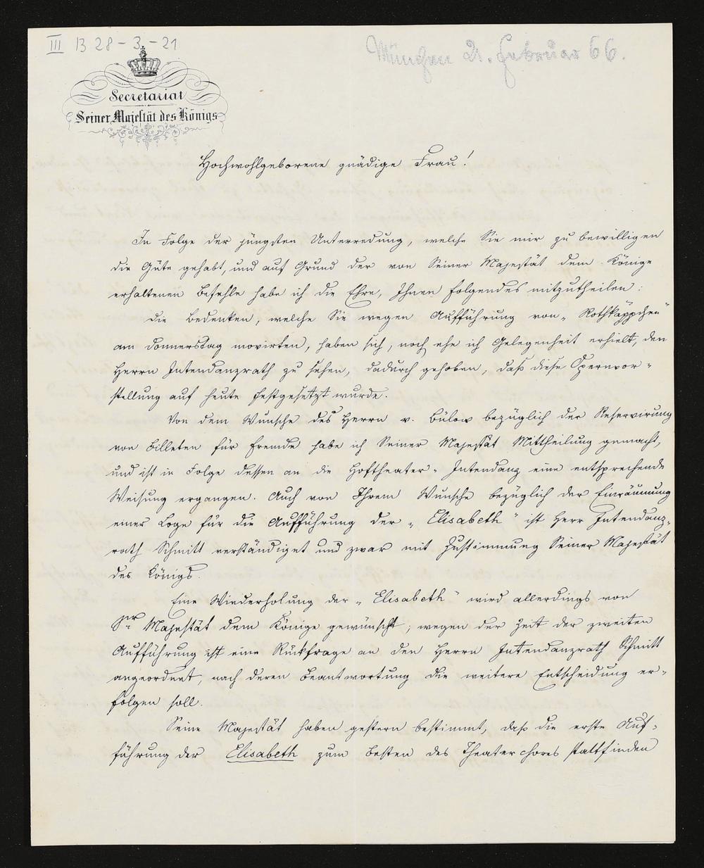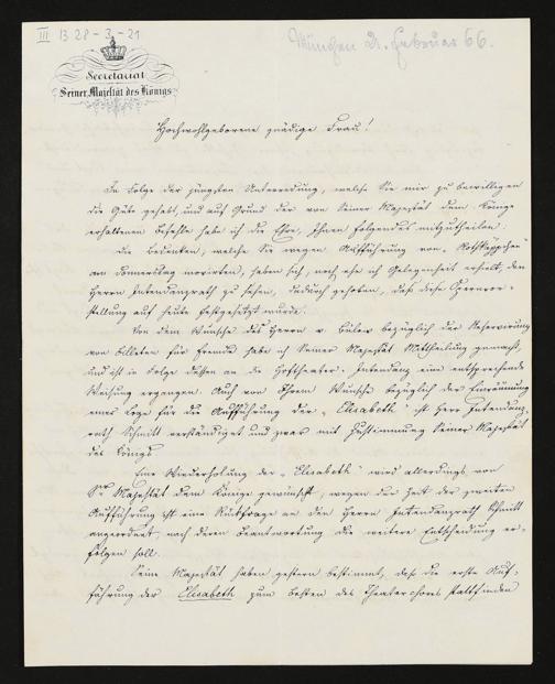 eigenhändiger Brief von Johann Freiherr von Lutz an Cosima Wagner