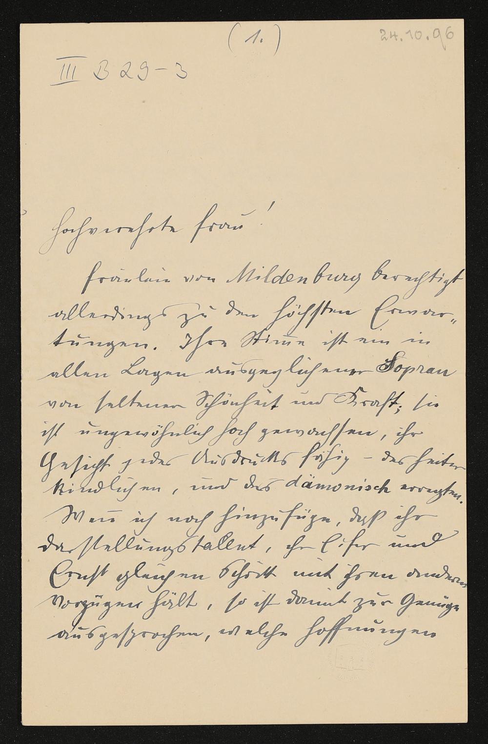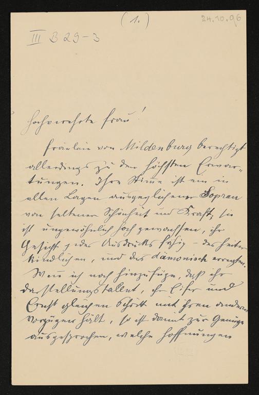 eigenhändiger Brief von Gustav Mahler an Cosima Wagner