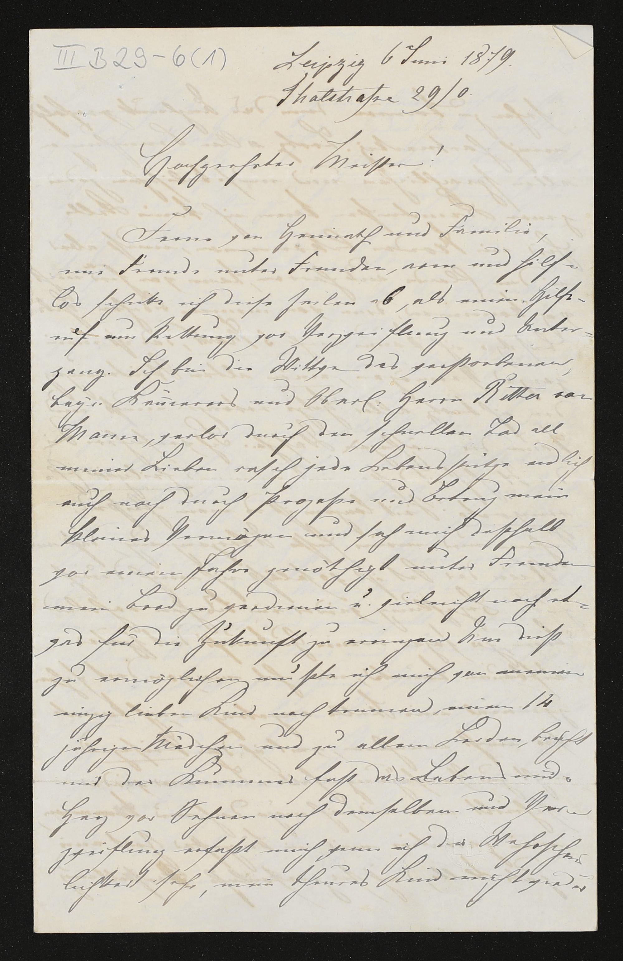 eigenhändiger Brief von Ottilie von Mann an Richard Wagner
