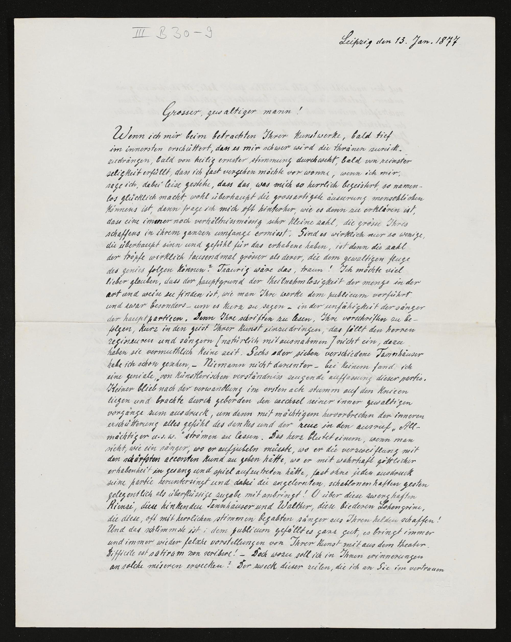 eigenhändiger Brief von Rudolf Merklein an Richard Wagner