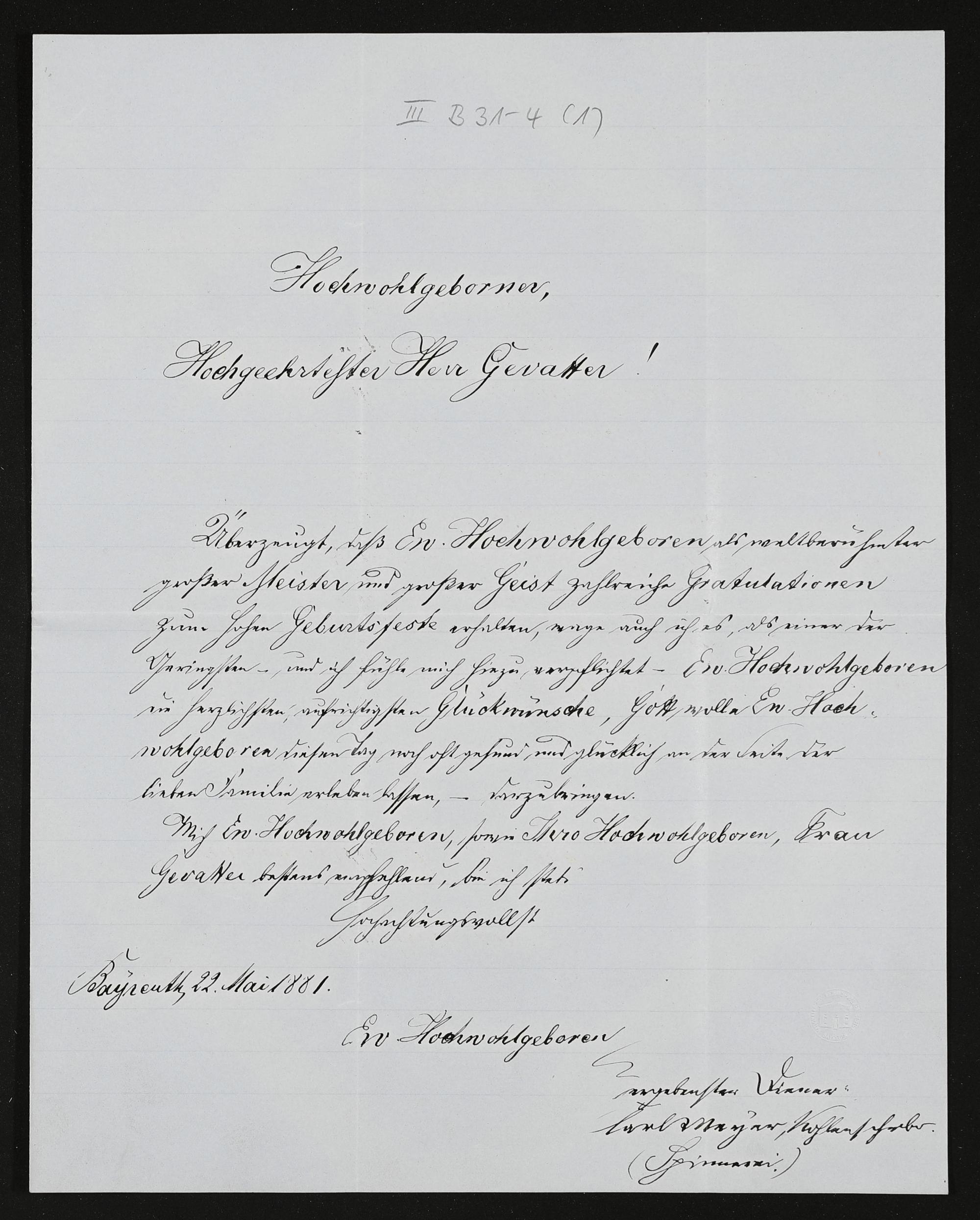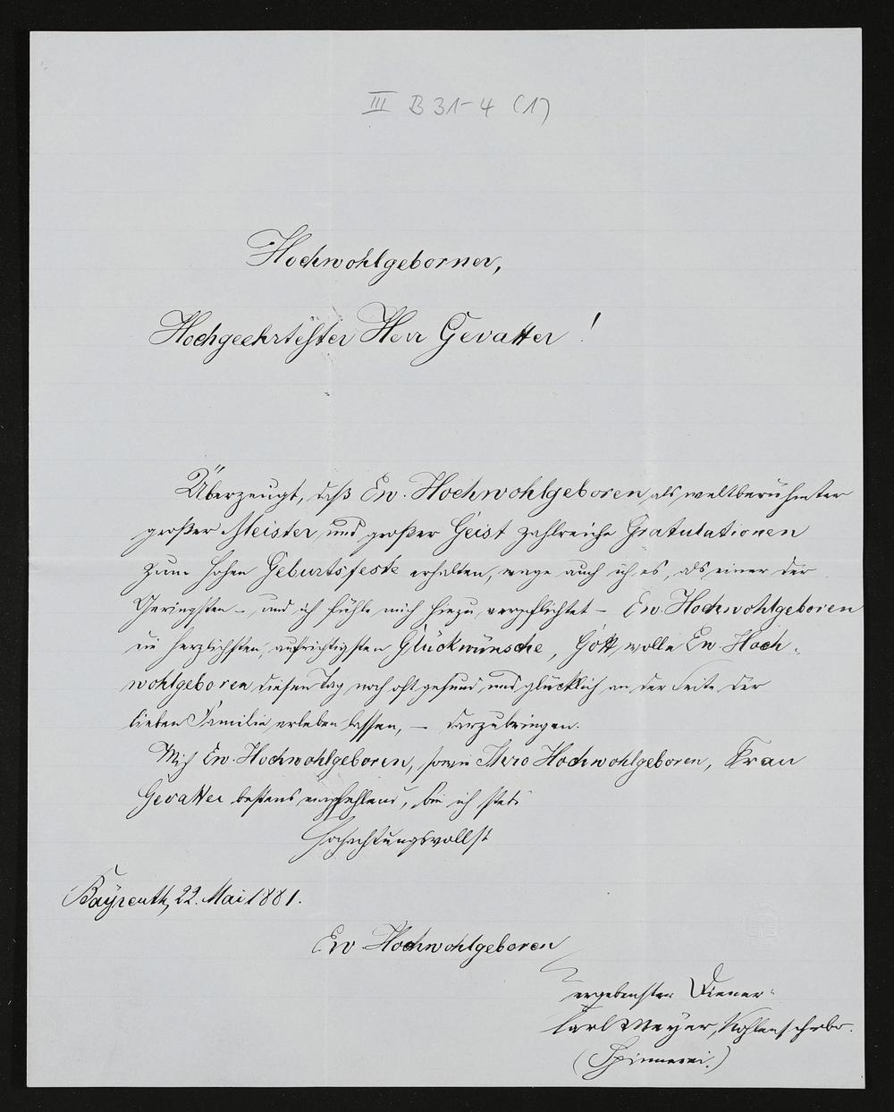 eigenhändiger Brief von Carl Meyer an Richard Wagner