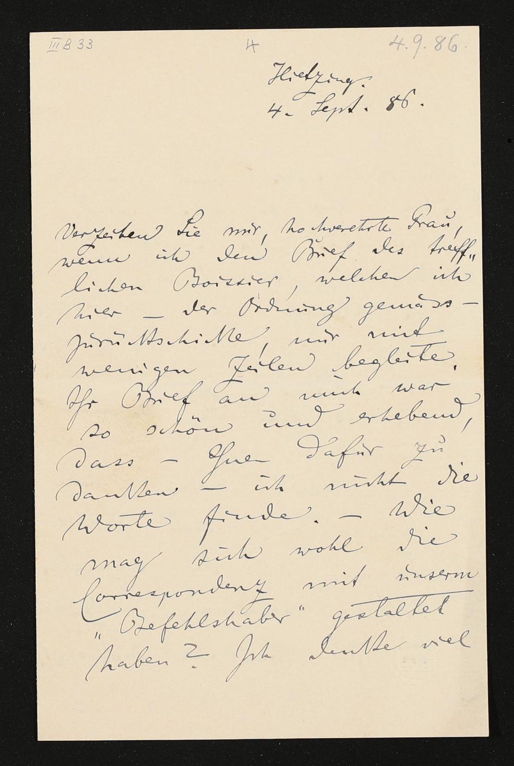 eigenhändiger Brief von Felix Mottl an Cosima Wagner