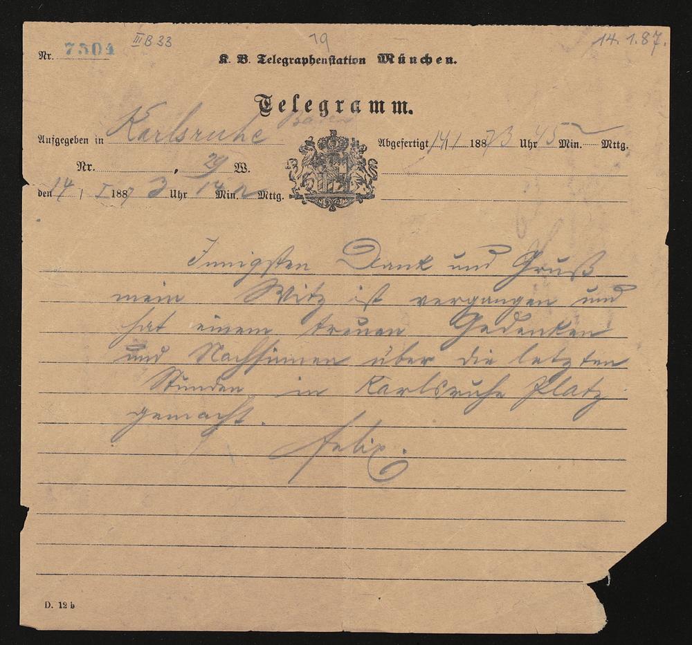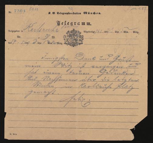 Telegramm von Felix Mottl an Cosima Wagner