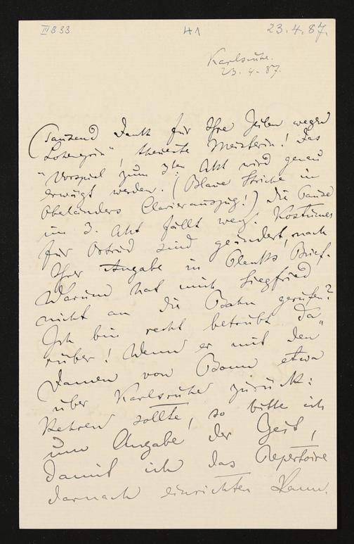 eigenhändiger Brief von Felix Mottl an Cosima Wagner