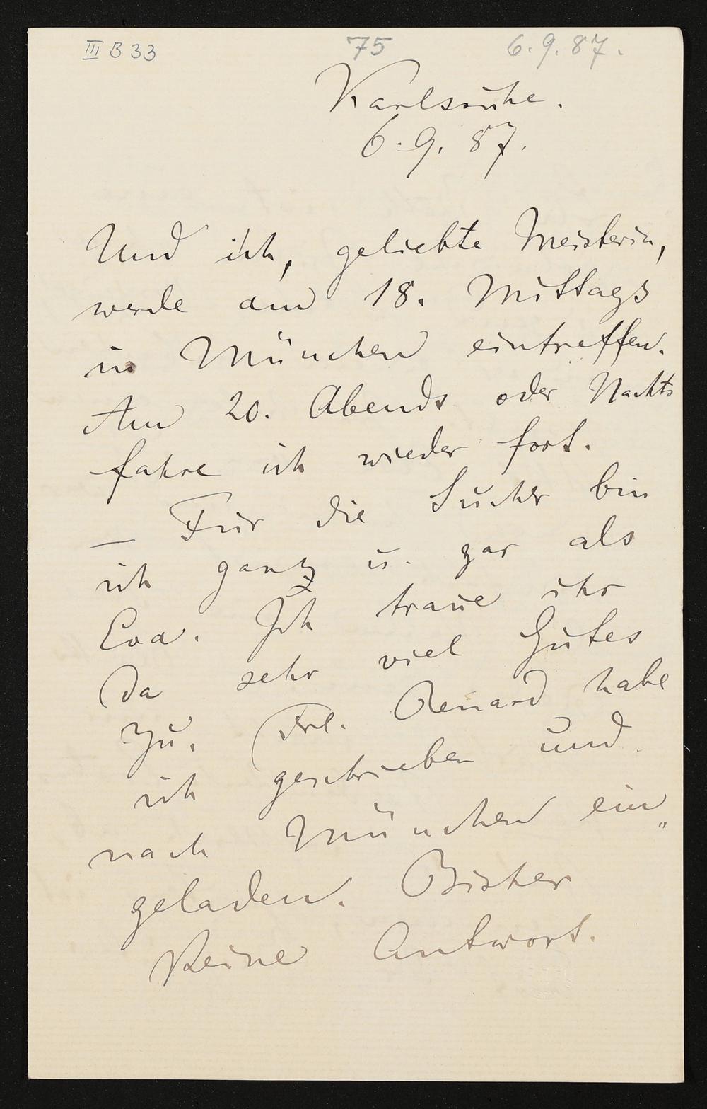 eigenhändiger Brief von Felix Mottl an Cosima Wagner