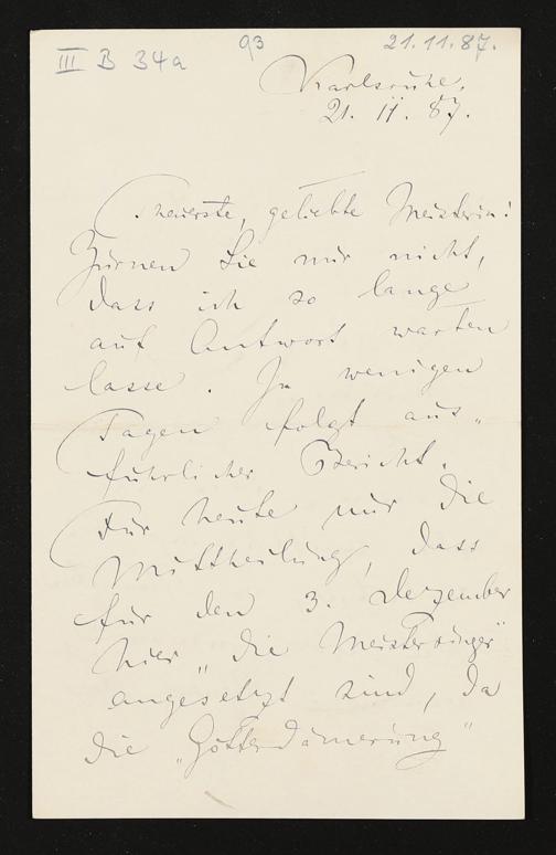 eigenhändiger Brief von Felix Mottl an Cosima Wagner