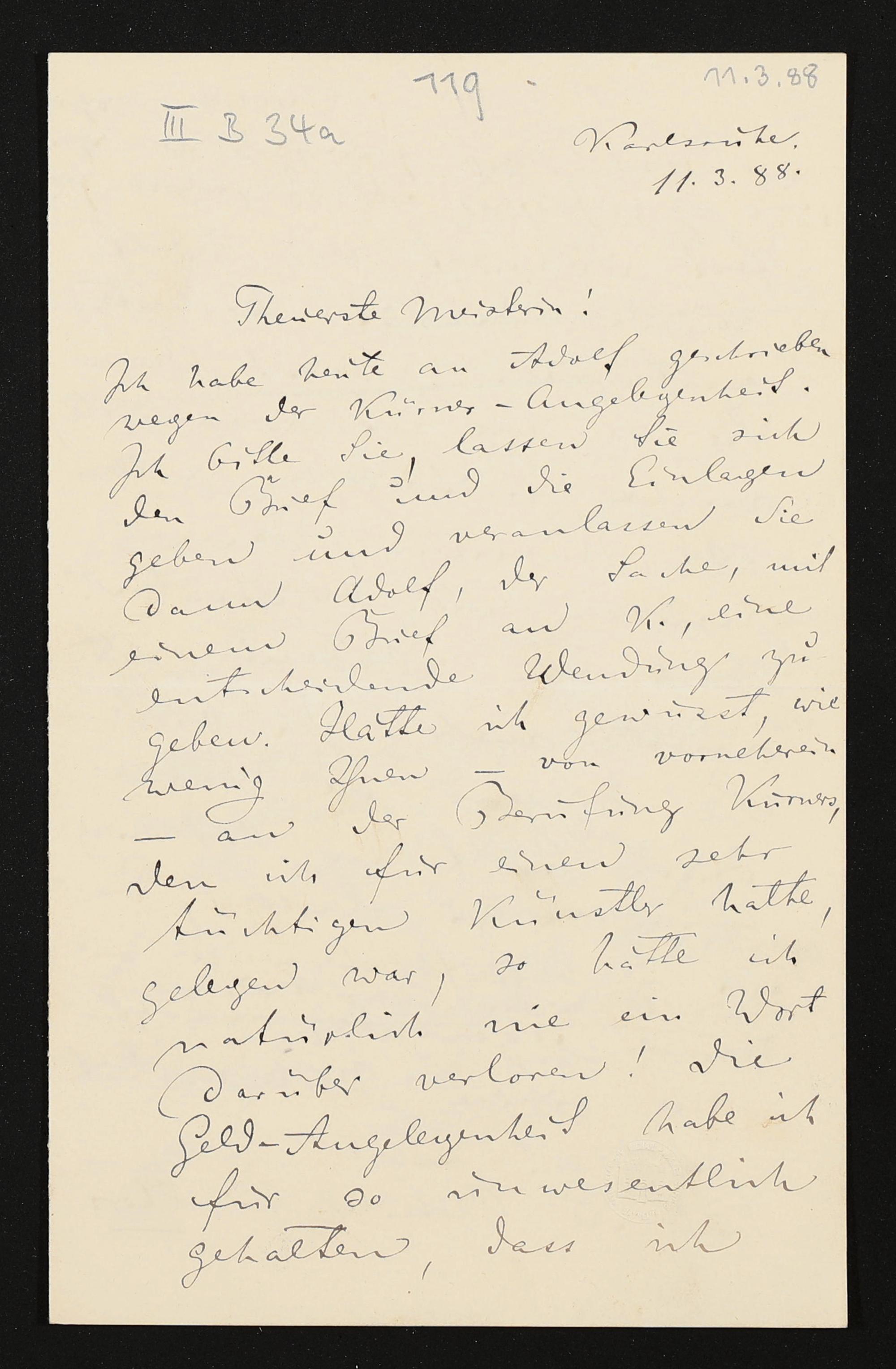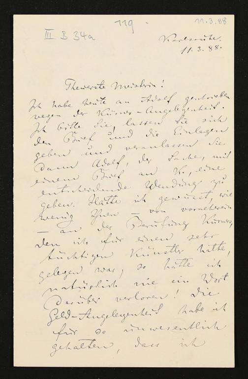 eigenhändiger Brief von Felix Mottl an Cosima Wagner