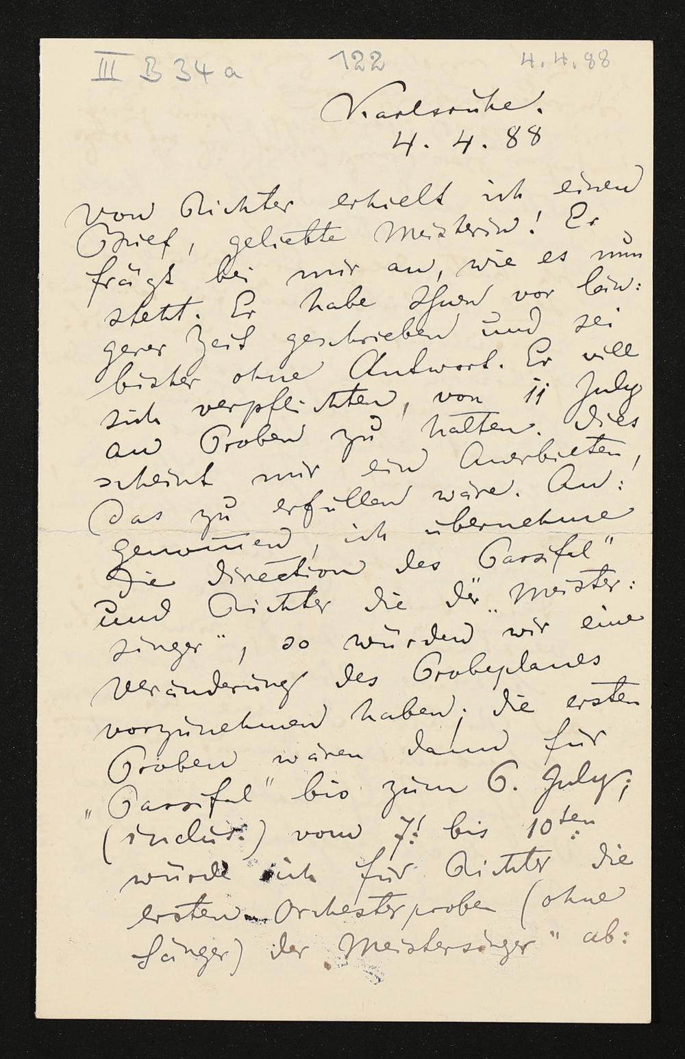 eigenhändiger Brief von Felix Mottl an Cosima Wagner
