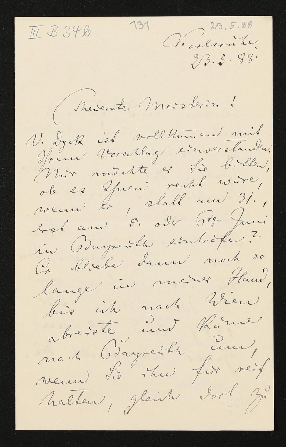 eigenhändiger Brief von Felix Mottl an Cosima Wagner