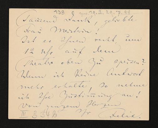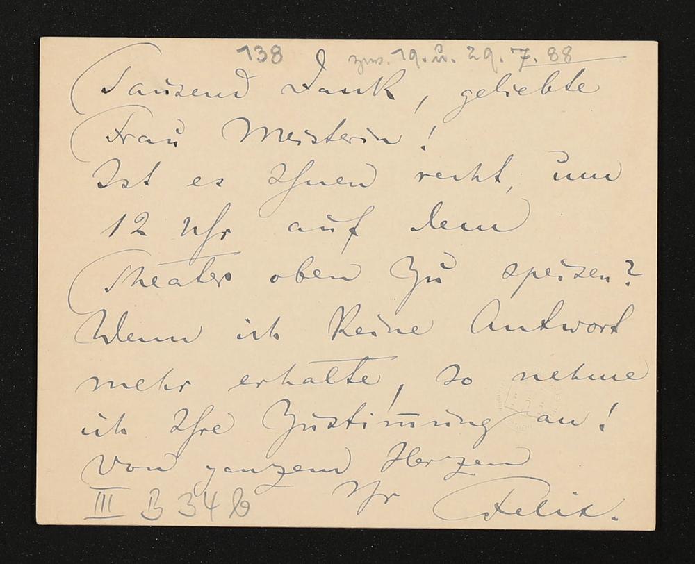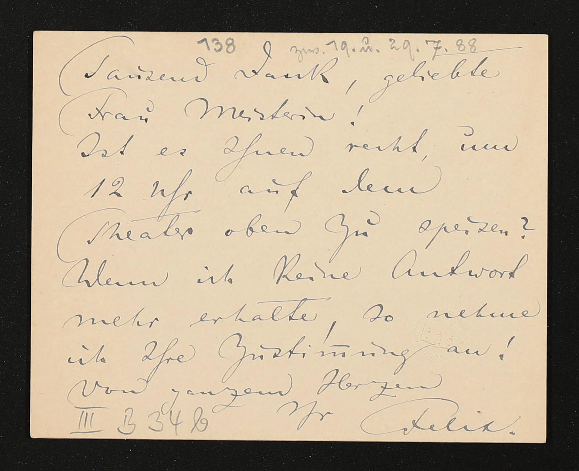 eigenhändige Briefkarte von Felix Mottl an Cosima Wagner
